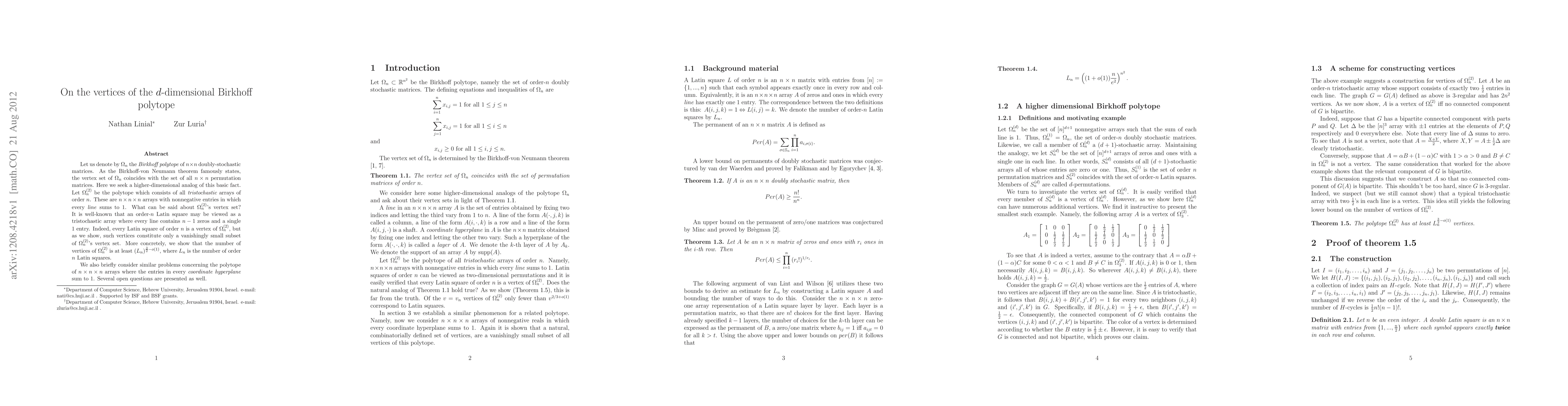 This paper explores the vertices of the d-dimensional Birkhoff polytope, specifically focusing on tristochastic arrays. It reveals that while Latin squares of order n are vertices, they form a negligible fraction of the total vertices, which number at least (L_n)^{3/2-o(1)}, where L_n is the number of order-n Latin squares.
