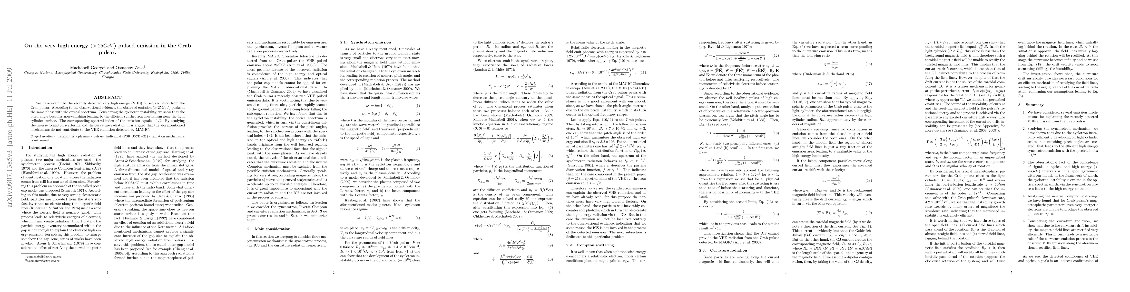 We have examined the recently detected very high energy (VHE) pulsed radiation from the Crab pulsar. According to the observational evidence, the observed emission (>25GeV) peaks at the same phase with the optical spectrum. Considering the cyclotron instability, we show that the pitch angle becomes non-vanishing leading to the efficient synchrotron mechanism near the light cylinder surface. The corresponding spectral index of the emission equals -1/2. By studying the inverse Compton scattering and the curvature radiation, it is argued that the aforementioned mechanisms do not contribute to the VHE radiation detected by MAGIC.