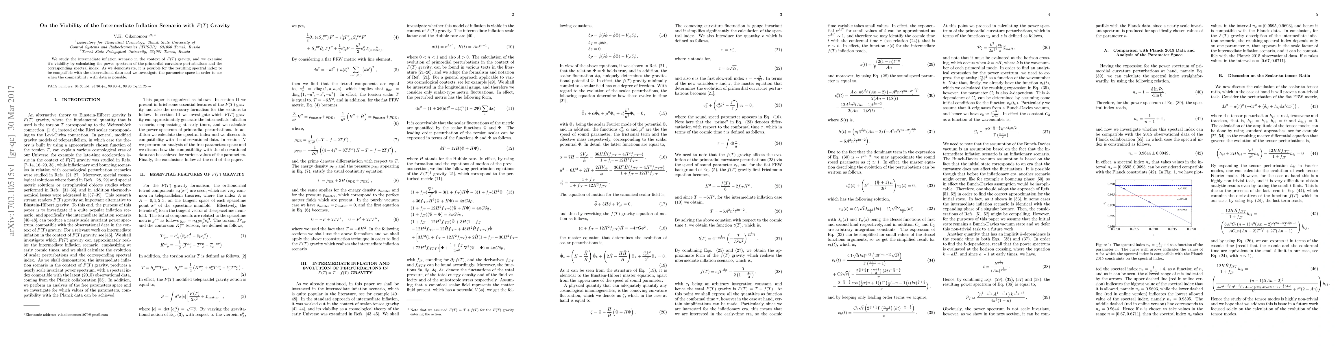 This paper explores the feasibility of intermediate inflation within $F(T)$ gravity, assessing its viability through the power spectrum of primordial curvature perturbations and the spectral index, finding compatibility with observational data under certain parameter conditions.