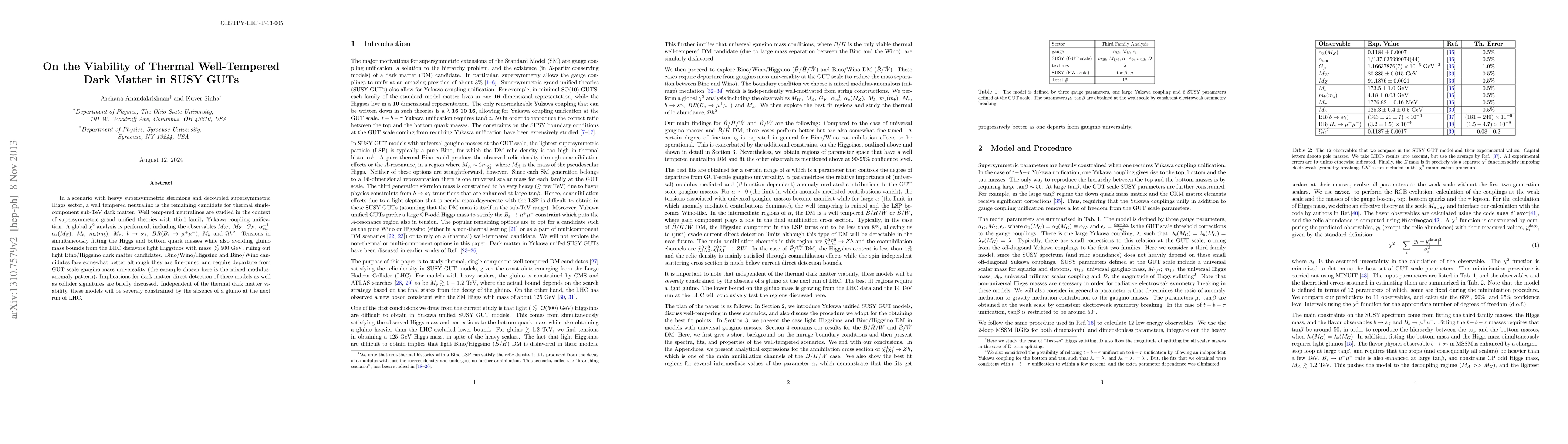 In a scenario with heavy supersymmetric sfermions and decoupled supersymmetric Higgs sector, a well tempered neutralino is the remaining candidate for thermal single-component sub-TeV dark matter. Well tempered neutralinos are studied in the context of supersymmetric grand unified theories with third family Yukawa coupling unification. A global chi^2 analysis is performed, including the observables MW, MZ, GF, alpha_em, alpha_s(MZ), Mt, mb(mb), Mtau, b -> s gamma, BR(Bs -> mu^+ mu^-), Mh and Omegah^2. Tensions in simultaneously fitting the Higgs and bottom quark masses while also avoiding gluino mass bounds from the LHC disfavors light Higgsinos with mass < 500 GeV, ruling out light Bino/Higgsino dark matter candidates. Bino/Wino/Higgsino and Bino/Wino candidates fare somewhat better although they are fine-tuned and require departure from GUT scale gaugino mass universality (the example chosen here is the mixed modulus-anomaly pattern). Implications for dark matter direct detection of these models as well as collider signatures are briefly discussed. Independent of the thermal dark matter viability, these models will be severely constrained by the absence of a gluino at the next run of LHC.