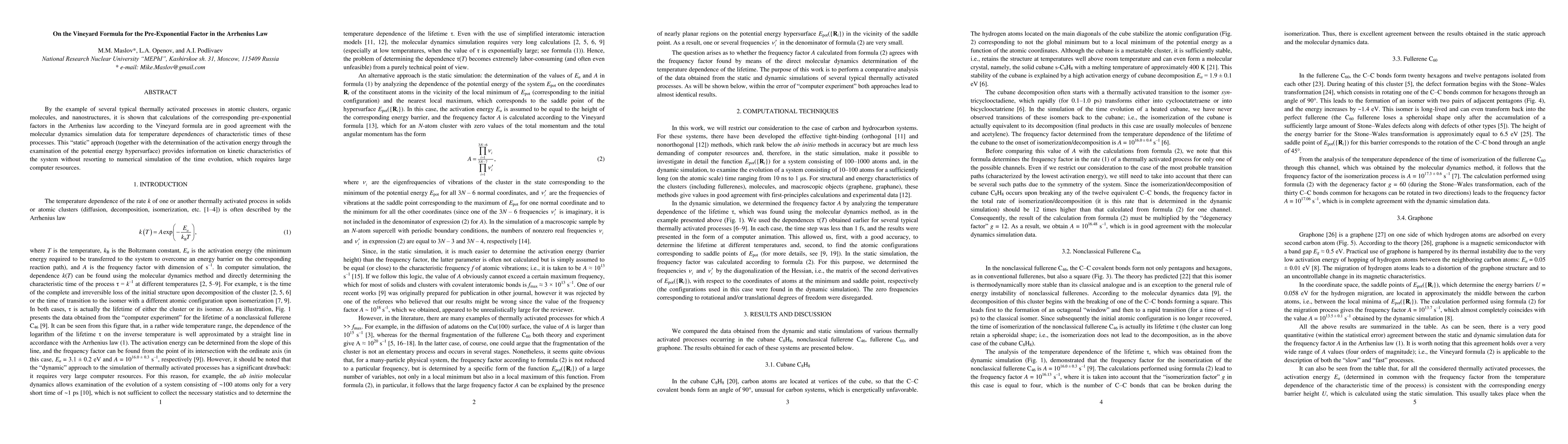 By the example of several typical thermally activated processes in atomic clusters, organic molecules, and nanostructures, it is shown that calculations of the corresponding pre-exponential factors in the Arrhenius law according to the Vineyard formula are in good agreement with the molecular dynamics simulation data for temperature dependences of characteristic times of these processes. This "static" approach (together with the determination of the activation energy through the examination of the potential energy hypersurface) provides information on kinetic characteristics of the system without resorting to numerical simulation of the time evolution, which requires large computer resources.