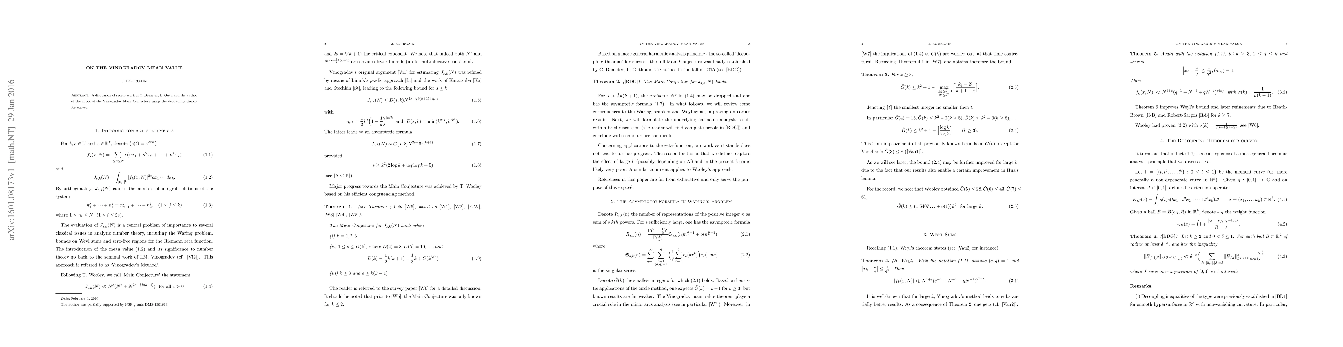 A discussion of recent work of C.Demeter, L.Guth and the author of the proof of the Vinogradov Main Conjecture using the decoupling theory for curves