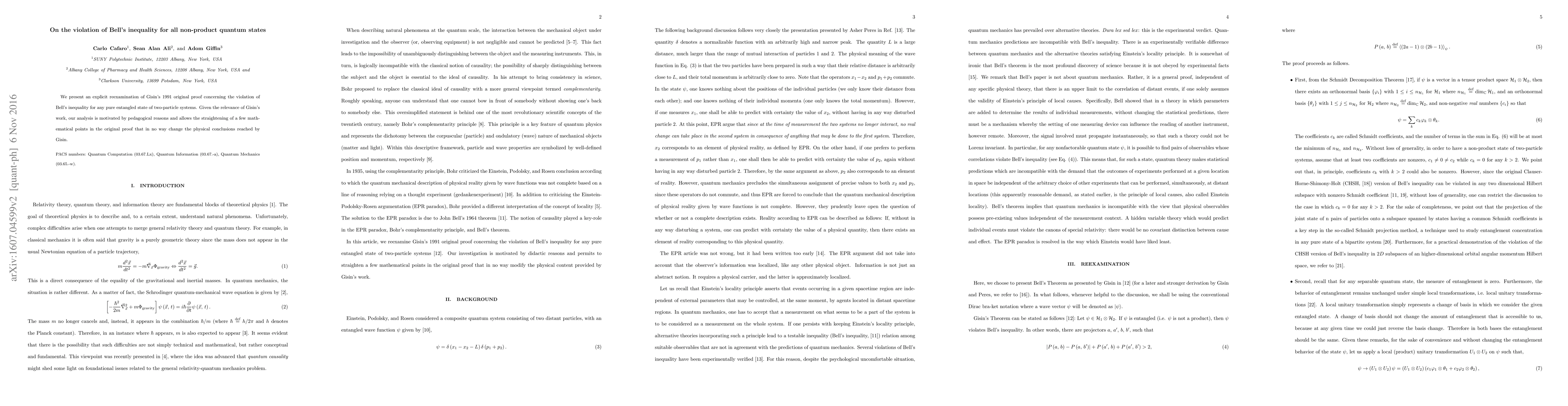 We present an explicit reexamination of Gisin's 1991 original proof concerning the violation of Bell's inequality for any pure entangled state of two-particle systems. Given the relevance of Gisin's work, our analysis is motivated by pedagogical reasons and allows the straightening of a few mathematical points in the original proof that in no way change the physical conclusions reached by Gisin.