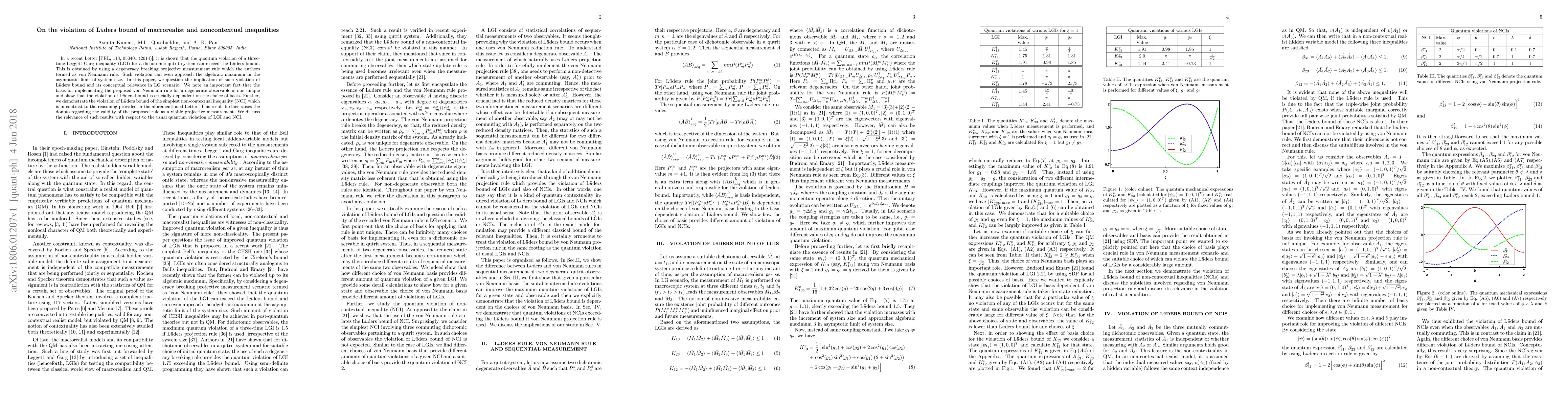 In a recent Letter [PRL, 113, 050401 (2014)], it is shown that the quantum violation of a three-time Leggett-Garg inequality (LGI) for a dichotomic qutrit system can exceed the L$\ddot{u}$ders bound. This is obtained by using a degeneracy breaking projective measurement rule which the authors termed as von Neumann rule. Such violation can even approach the algebraic maximum in the asymptotic limit of system size. In this paper, we question the implication of such violation of L$\ddot{u}$ders bound and its conceptual relevance in LG scenario. We note an important fact that the basis for implementing the proposed von Neumann rule for a degenerate observable is non-unique and show that the violation of L$\ddot{u}$ders bound is crucially dependent on the choice of basis. Further, we demonstrate the violation of L$\ddot{u}$ders bound of the simplest non-contextual inequality (NCI) which is in contrast to the reasoning provided in the aforementioned Letter. This result further raises the doubts regarding the validity of the proposed rule as a viable projective measurement. We discuss the relevance of such results with respect to the usual quantum violation of LGI and NCI.