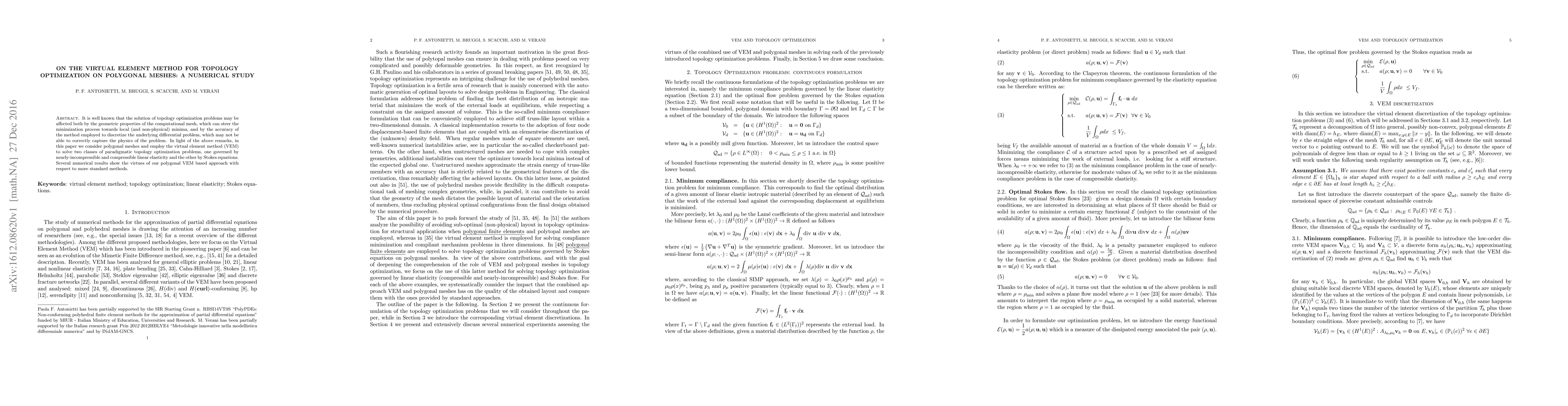 This paper investigates the use of the virtual element method (VEM) for topology optimization on polygonal meshes, demonstrating its effectiveness for linear elasticity and Stokes problems. Numerical results highlight the advantages of VEM over standard methods in capturing the physics of the problem.
