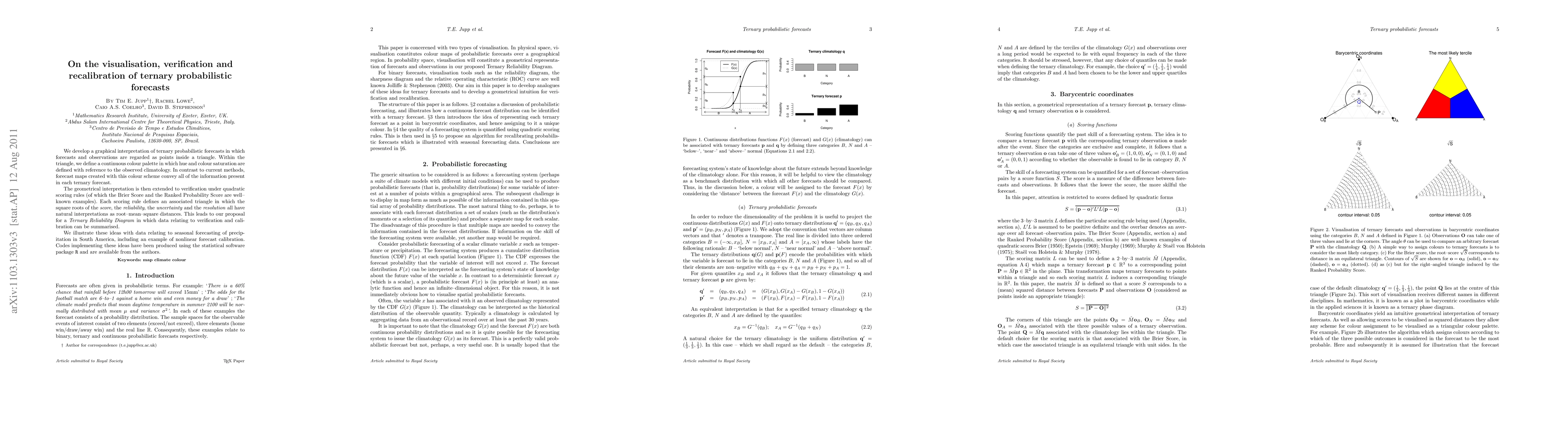 Researchers develop a new method to visualize and verify ternary probabilistic forecasts using geometric interpretations of triangles, providing a clearer understanding of forecast accuracy and reliability.