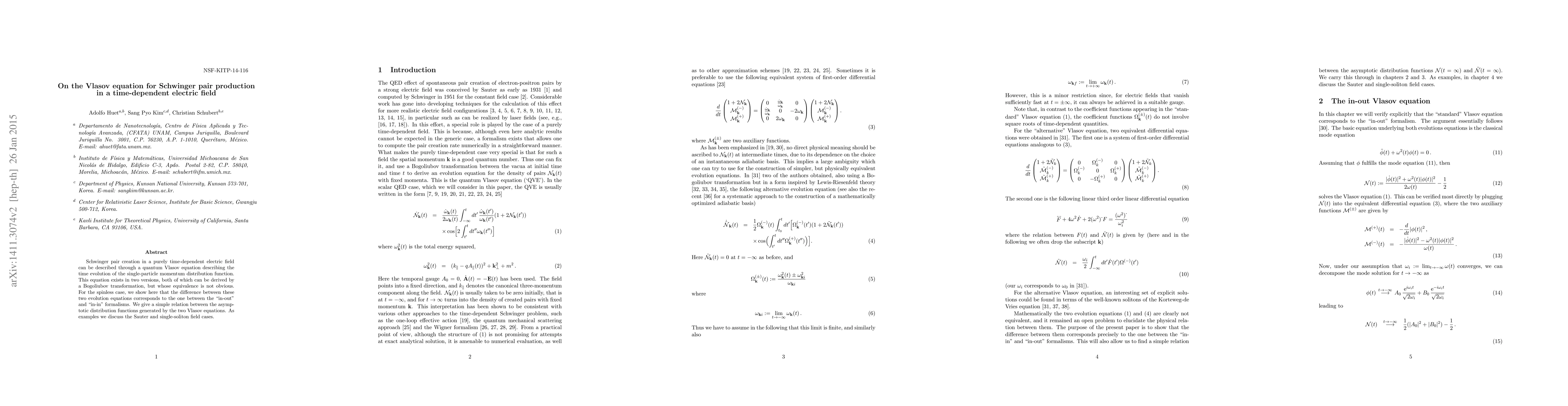 This paper compares two versions of a quantum equation used to describe how electron-positron pairs are created in a changing electric field, revealing their differences relate to different theoretical approaches. The authors demonstrate how these equations connect and illustrate their findings with specific electric field examples.
