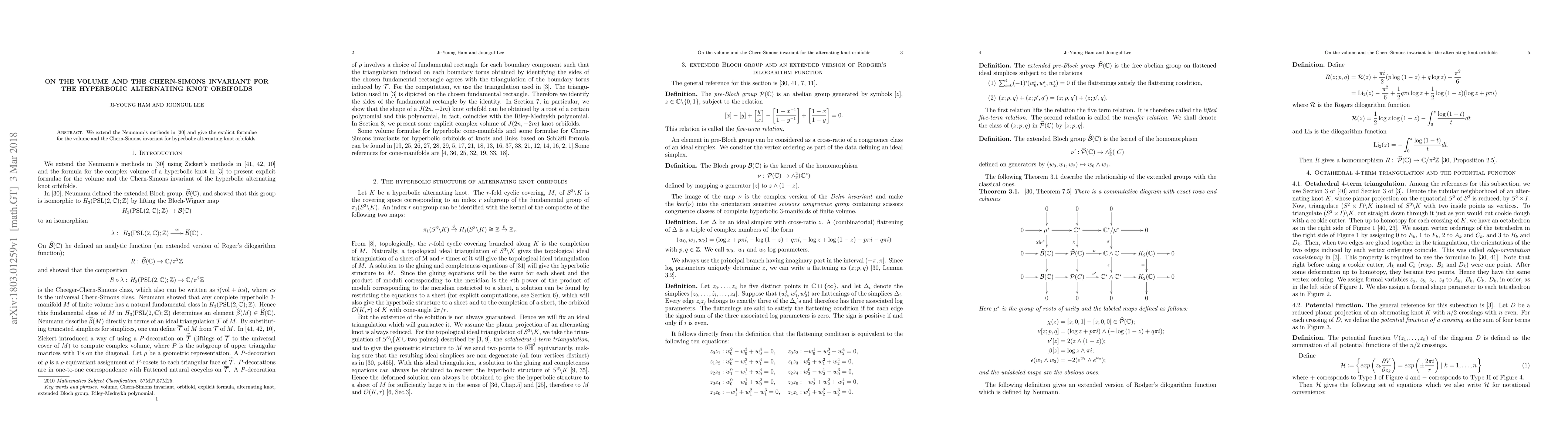 Summary: This paper extends Neumann's methods to derive explicit formulae for the volume and Chern-Simons invariant of hyperbolic alternating knot orbifolds, providing new insights into their geometric and topological properties.