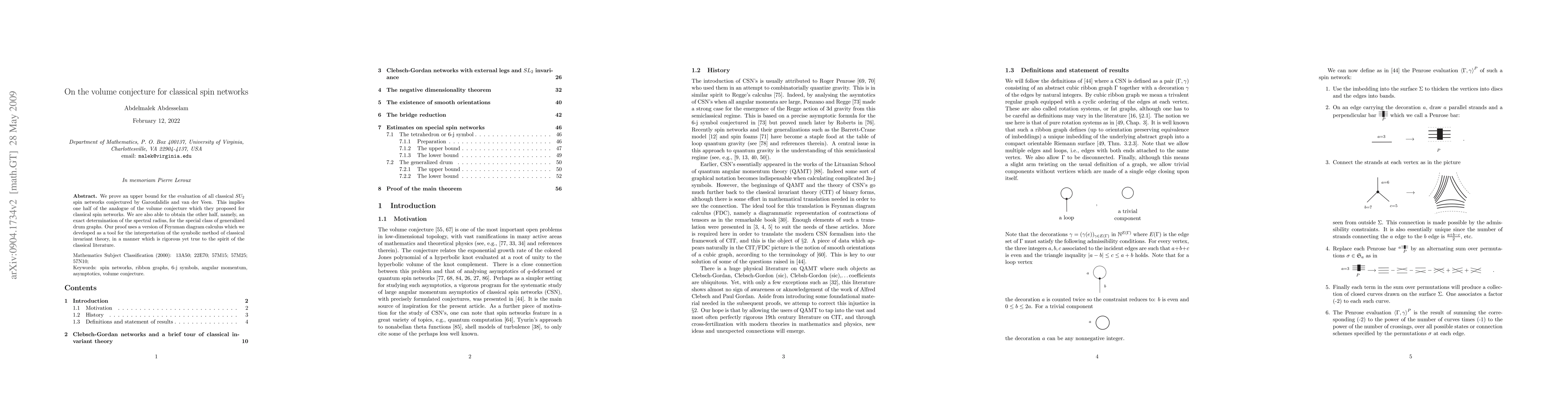 We prove an upper bound for the evaluation of all classical SU(2) spin networks conjectured by Garoufalidis and van der Veen. This implies one half of the analogue of the volume conjecture which they proposed for classical spin networks. We are also able to obtain the other half, namely, an exact determination of the spectral radius, for the special class of generalized drum graphs. Our proof uses a version of Feynman diagram calculus which we developed as a tool for the interpretation of the symbolic method of classical invariant theory, in a manner which is rigorous yet true to the spirit of the classical literature.