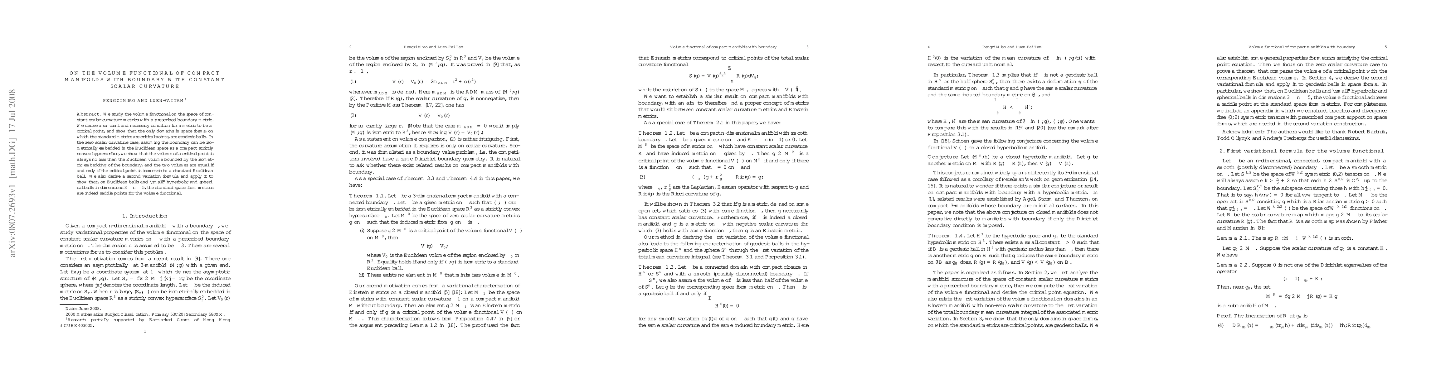 We study the volume functional on the space of constant scalar curvature metrics with a prescribed boundary metric. We derive a sufficient and necessary condition for a metric to be a critical point, and show that the only domains in space forms, on which the standard metrics are critical points, are geodesic balls. In the zero scalar curvature case, assuming the boundary can be isometrically embedded in the Euclidean space as a compact strictly convex hypersurface, we show that the volume of a critical point is always no less than the Euclidean volume bounded by the isometric embedding of the boundary, and the two volumes are equal if and only if the critical point is isometric to a standard Euclidean ball. We also derive a second variation formula and apply it to show that, on Euclidean balls and ''small'' hyperbolic and spherical balls in dimensions 3 to 5, the standard space form metrics are indeed saddle points for the volume functional.