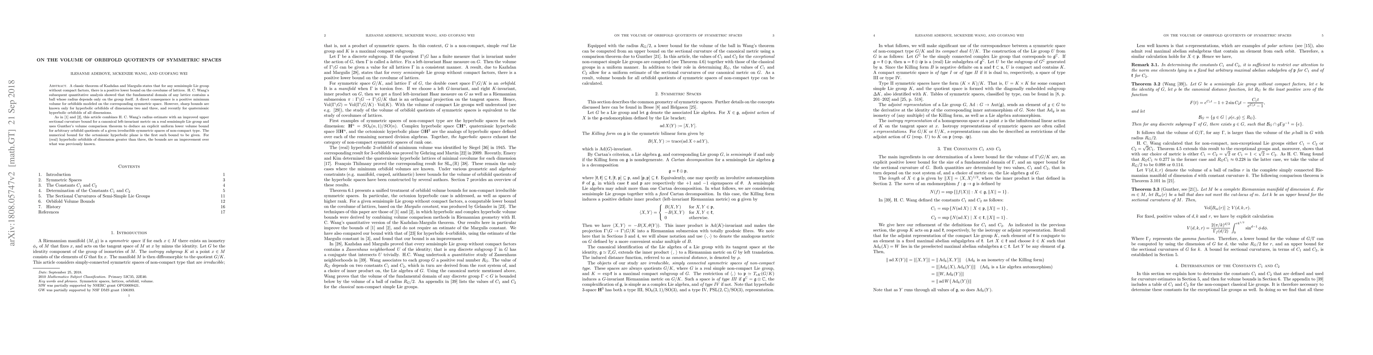 Researchers have established a lower bound on the volume of orbifold quotients of symmetric spaces, improving known bounds for hyperbolic orbifolds in dimensions greater than three.