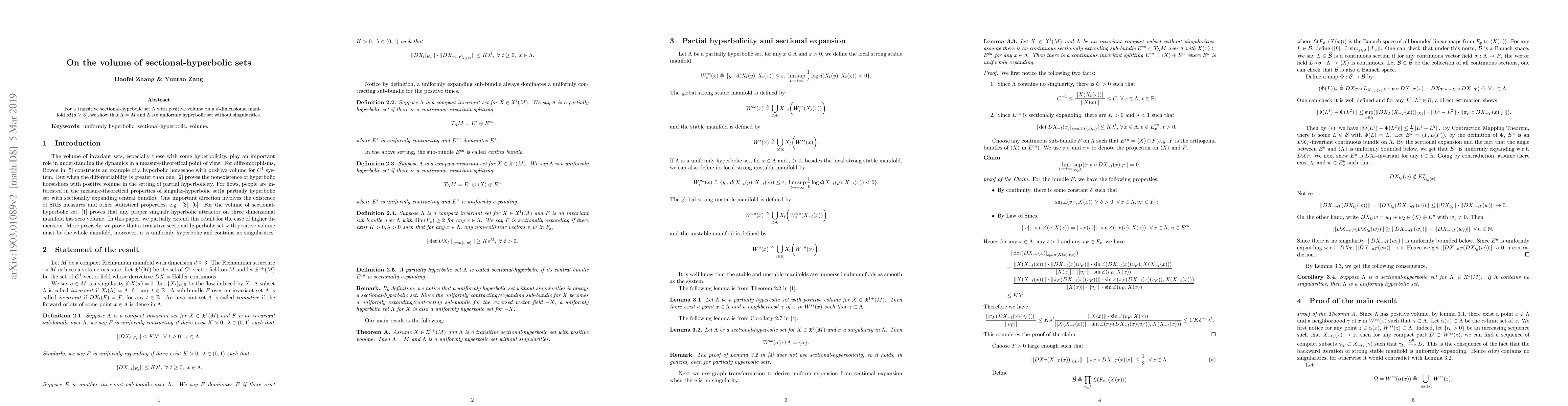 This paper proves that a transitive sectional-hyperbolic set $\Lambda$ with positive volume on a $d$-dimensional manifold $M$ ($d\ge3$) must equal the entire manifold $M$ and be a uniformly hyperbolic set without singularities.