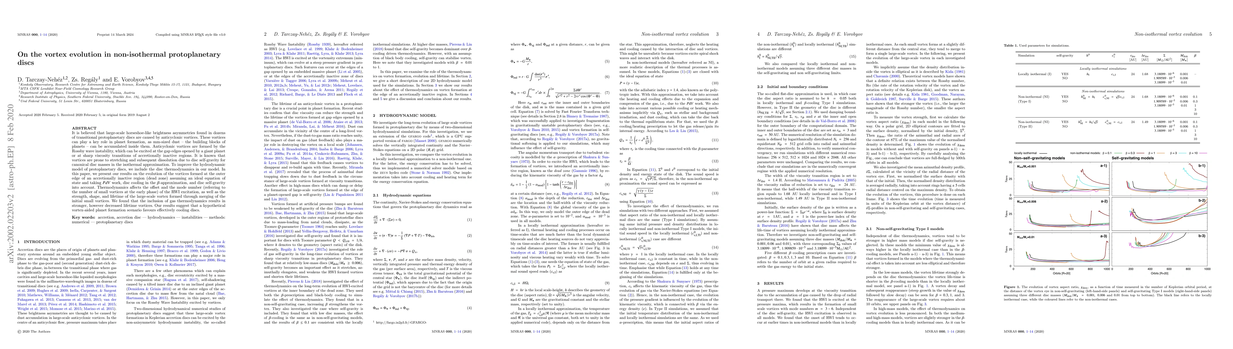 This paper investigates the evolution of anticyclonic vortices in non-isothermal protoplanetary discs, finding that thermodynamics enhances vortex strength but reduces their lifetime. The study suggests that cooling discs may favor vortex-aided planet formation scenarios.