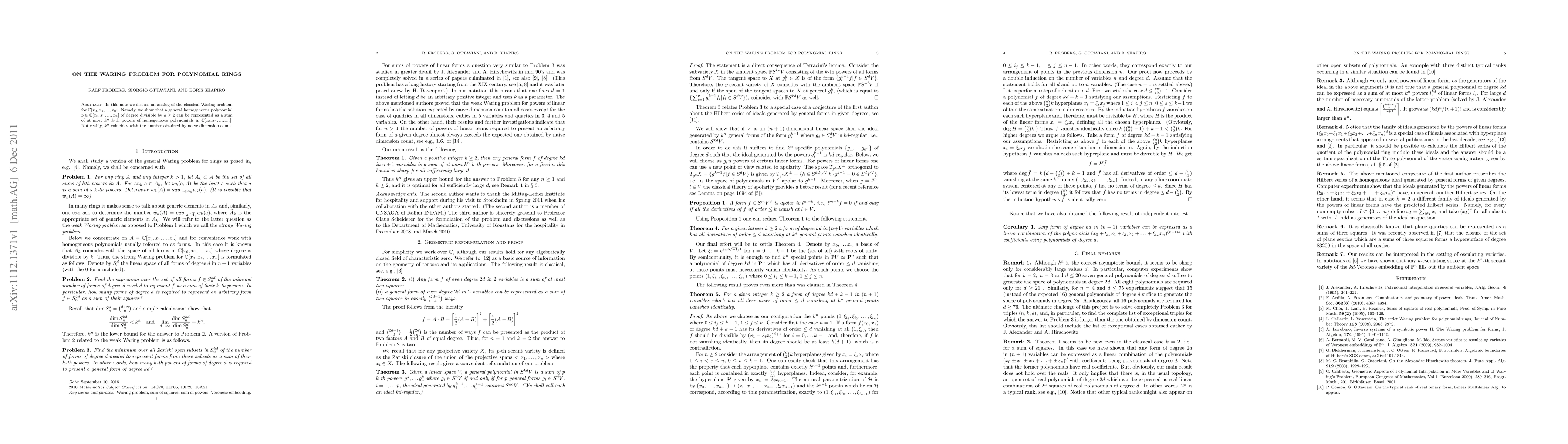 In this note we discuss an analog of the classical Waring problem for C[x_0, x_1,...,x_n]. Namely, we show that a general homogeneous polynomial p \in C[x_0,x_1,...,x_n] of degree divisible by k\ge 2 can be represented as a sum of at most k^n k-th powers of homogeneous polynomials in C[x_0, x_1,...,x_n]. Noticeably, k^n coincides with the number obtained by naive dimension count.