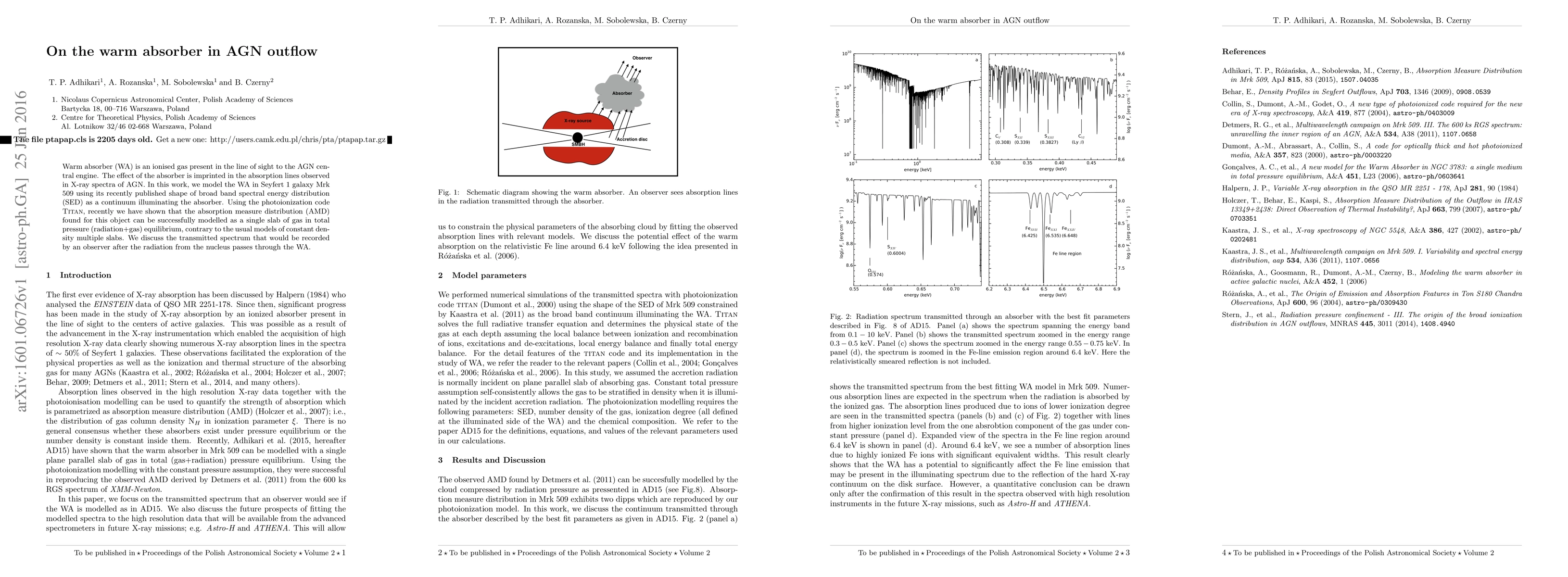 Warm absorber (WA) is an ionised gas present in the line of sight to the AGN central engine. The effect of the absorber is imprinted in the absorption lines observed in X-ray spectra of AGN. In this work, we model the WA in Seyfert 1 galaxy Mrk 509 using its recently published shape of broad band spectral energy distribution (SED) as a continuum illuminating the absorber. Using the photoionization code {\sc Titan}, recently we have shown that the absorption measure distribution (AMD) found for this object can be successfully modelled as a single slab of gas in total pressure (radiation+gas) equilibrium, contrary to the usual models of constant density multiple slabs. We discuss the transmitted spectrum that would be recorded by an observer after the radiation from the nucleus passes through the WA.