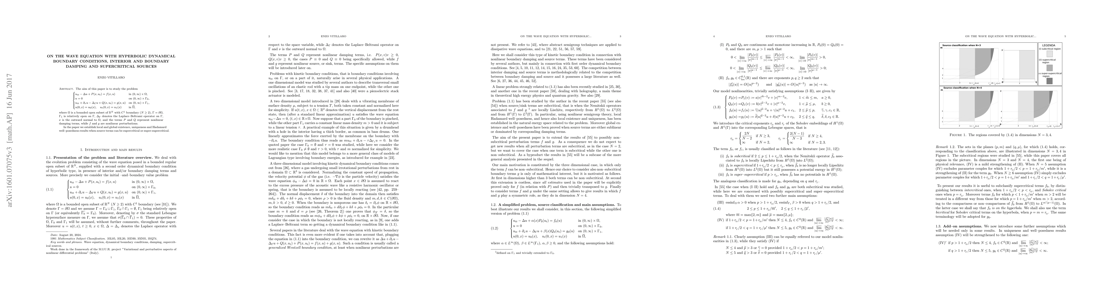 The aim of the paper is to study the problem $$ \begin{cases} u_{tt}-\Delta u+P(x,u_t)=f(x,u) \qquad &\text{in $(0,\infty)\times\Omega$,} u=0 &\text{on $(0,\infty)\times \Gamma_0$,} u_{tt}+\partial_\nu u-\Delta_\Gamma u+Q(x,u_t)=g(x,u)\qquad &\text{on $(0,\infty)\times \Gamma_1$,} u(0,x)=u_0(x),\quad u_t(0,x)=u_1(x) & \text{in $\bar{\Omega}$,} \end{cases}$$ where $\Omega$ is a bounded open $C^1$ subset of $\mathbb{R}^N$, $N\ge 2$, $\Gamma=\partial\Omega$, $(\Gamma_0,\Gamma_1)$ is a measurable partition of $\Gamma$, $\Delta_\Gamma$ denotes the Laplace--Beltrami operator on $\Gamma$, $\nu$ is the outward normal to $\Omega$, and the terms $P$ and $Q$ represent nonlinear damping terms, while $f$ and $g$ are nonlinear source, or sink, terms. In the paper we establish local and existence, uniqueness and Hadamard well--posedness results when source terms can be supercritical or super-supercritical.