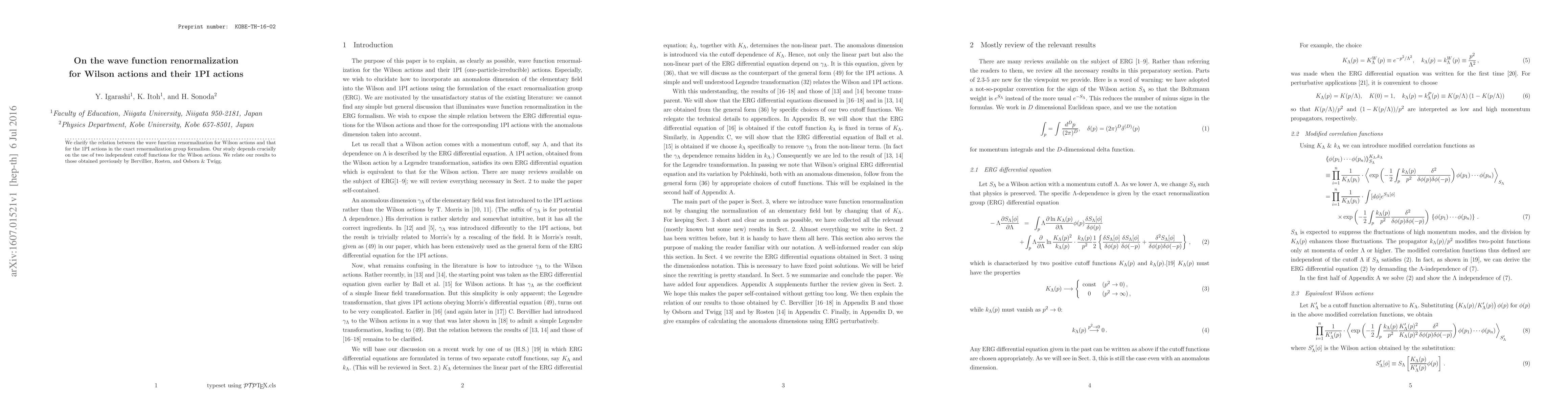 We clarify the relation between the wave function renormalization for Wilson actions and that for the 1PI actions in the exact renormalization group formalism. Our study depends crucially on the use of two independent cutoff functions for the Wilson actions. We relate our results to those obtained previously by Bervillier, Rosten, and Osborn & Twigg.