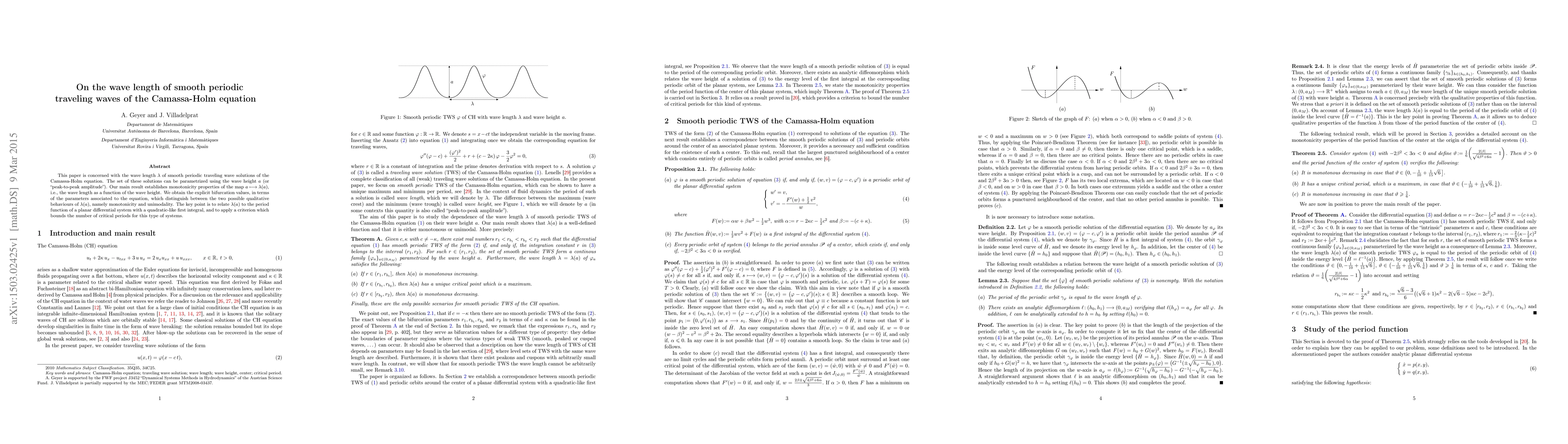 This paper is concerned with the wave length $\lambda$ of smooth periodic traveling wave solutions of the Camassa-Holm equation. The set of these solutions can be parametrized using the wave height $a$ (or "peak-to-peak amplitude"). Our main result establishes monotonicity properties of the map $a\longmapsto \lambda(a)$, i.e., the wave length as a function of the wave height. We obtain the explicit bifurcation values, in terms of the parameters associated to the equation, which distinguish between the two possible qualitative behaviours of $\lambda(a)$, namely monotonicity and unimodality. The key point is to relate $\lambda(a)$ to the period function of a planar differential system with a quadratic-like first integral, and to apply a criterion which bounds the number of critical periods for this type of systems.