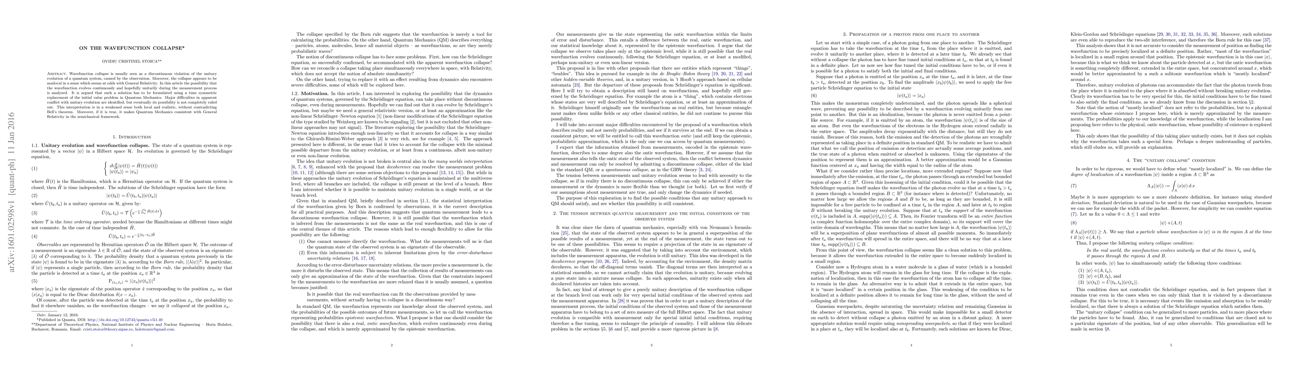 Wavefunction collapse is usually seen as a discontinuous violation of the unitary evolution of a quantum system, caused by the observation. Moreover, the collapse appears to be nonlocal in a sense which seems at odds with General Relativity. In this article the possibility that the wavefunction evolves continuously and hopefully unitarily during the measurement process is analyzed. It is argued that such a solution has to be formulated using a time symmetric replacement of the initial value problem in Quantum Mechanics. Major difficulties in apparent conflict with unitary evolution are identified, but eventually its possibility is not completely ruled out. This interpretation is in a weakened sense both local and realistic, without contradicting Bell's theorem. Moreover, if it is true, it makes Quantum Mechanics consistent with General Relativity in the semiclassical framework.