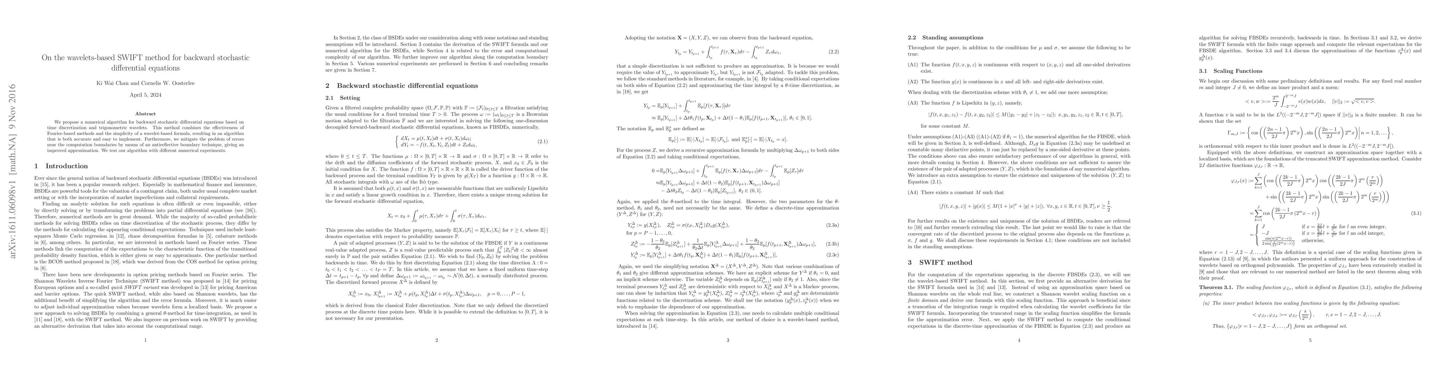 Researchers propose a wavelets-based method to solve backward stochastic differential equations, offering accuracy and ease of implementation while improving boundary error handling.