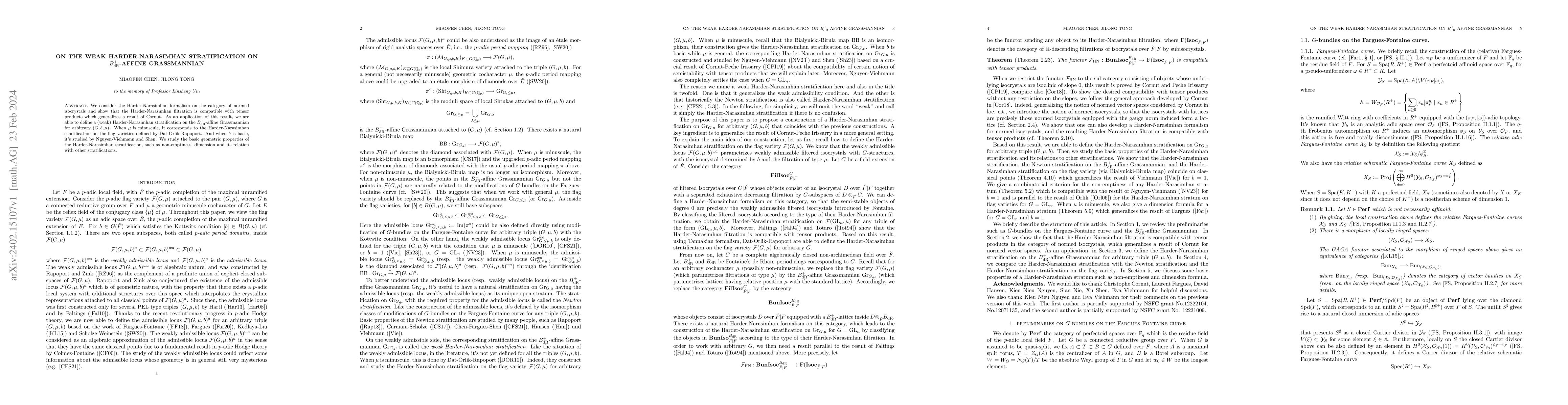 This paper extends the Harder-Narasimhan filtration to normed isocrystals, showing compatibility with tensor products. It defines a weak Harder-Narasimhan stratification on the $B_{\mathrm{dR}}^+$-affine Grassmannian, which aligns with known stratifications for minuscule and basic parameters.