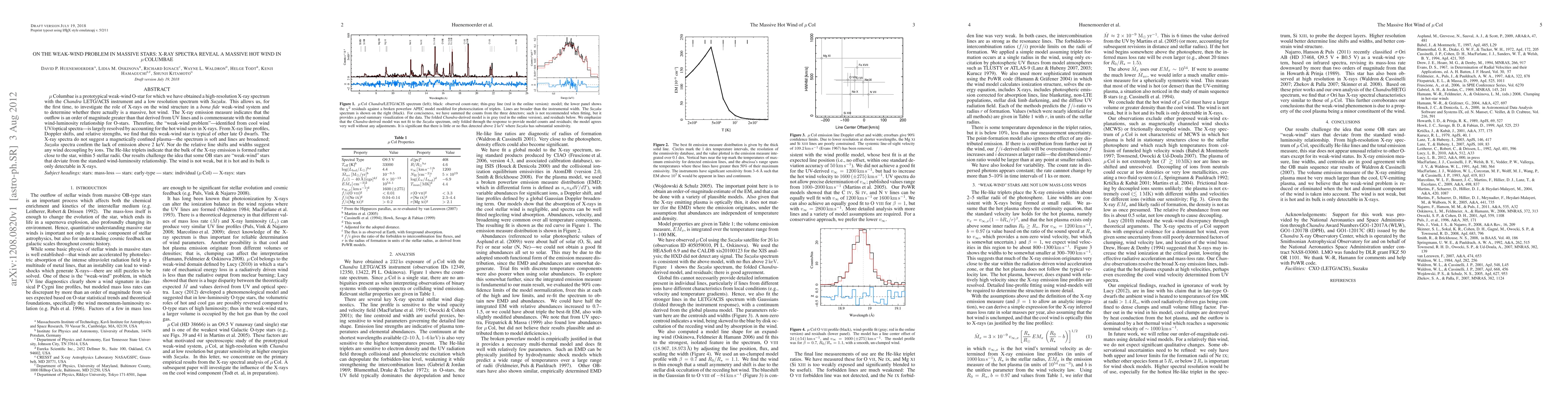 \mu\ Columbae is a prototypical weak-wind O-star for which we have obtained a high-resolution X-ray spectrum with the Chandra LETG/ACIS-S instrument and a low resolution spectrum with Suzaku. This allows us, for the first time, to investigate the role of X-rays on the wind structure in a bona fide weak-wind system and to determine whether there actually is a massive, hot wind. The X-ray emission measure indicates that the outflow is an order of magnitude greater than that derived from UV lines and is commensurate with the nominal wind-luminosity relationship for O-stars. Therefore, the ``weak-wind problem''---identified from cool wind UV/optical spectra---is largely resolved by accounting for the hot wind seen in X-rays. From X-ray line profiles, Doppler shifts, and relative strengths, we find that this weak-wind star is typical of other late O dwarfs. The X-ray spectra do not suggest a magnetically confined plasma---the spectrum is soft and lines are broadened; Suzaku spectra confirm the lack of emission above 2 keV. Nor do the relative line shifts and widths suggest any wind decoupling by ions. The He-like triplets indicate that the bulk of the X-ray emission is formed rather close to the star, within 5 stellar radii. Our results challenge the idea that some OB stars are ``weak-wind'' stars that deviate from the standard wind-luminosity relationship. The wind is not weak, but it is hot and its bulk is only detectable in X-rays.