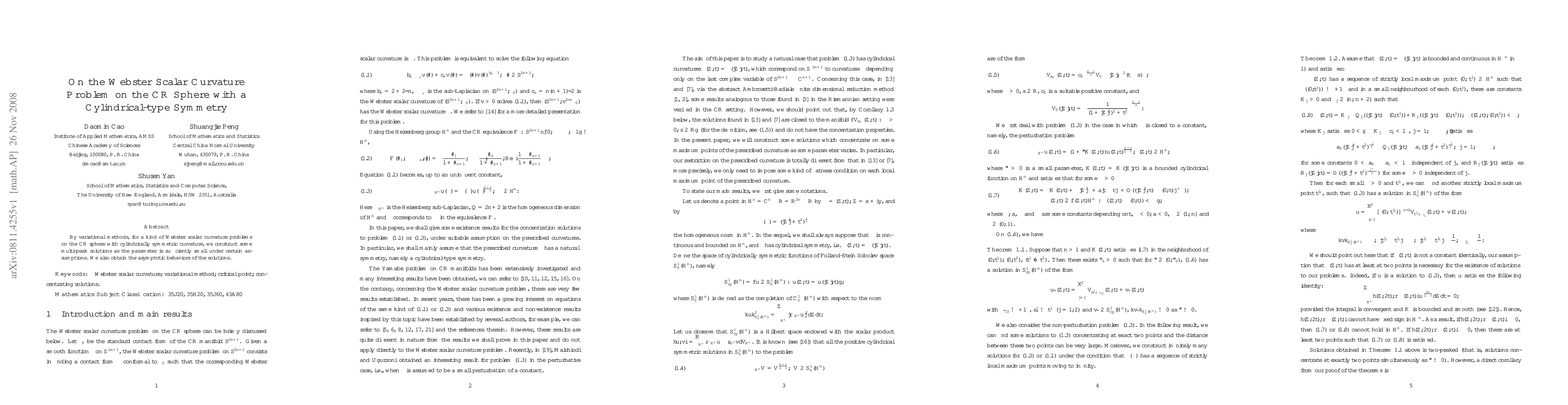 This paper constructs multi-peak solutions for a Webster scalar curvature problem on the CR sphere with cylindrical symmetry using variational methods, and analyzes their asymptotic behaviors when the parameter is sufficiently small.