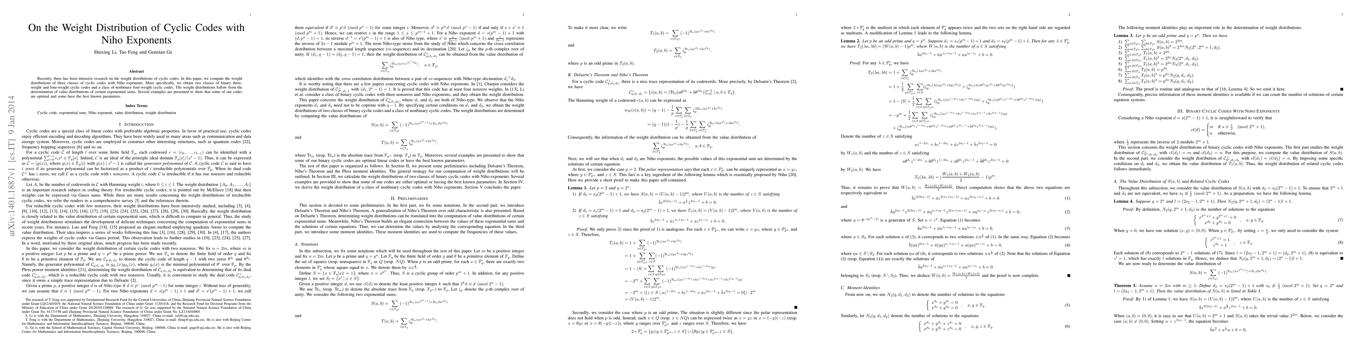 This paper computes the weight distributions for three classes of cyclic codes with Niho exponents, identifying two binary three-weight and four-weight cyclic codes, and one nonbinary four-weight cyclic code. The findings are derived from the value distributions of specific exponential sums, with examples demonstrating optimal and best-known parameters for some codes.