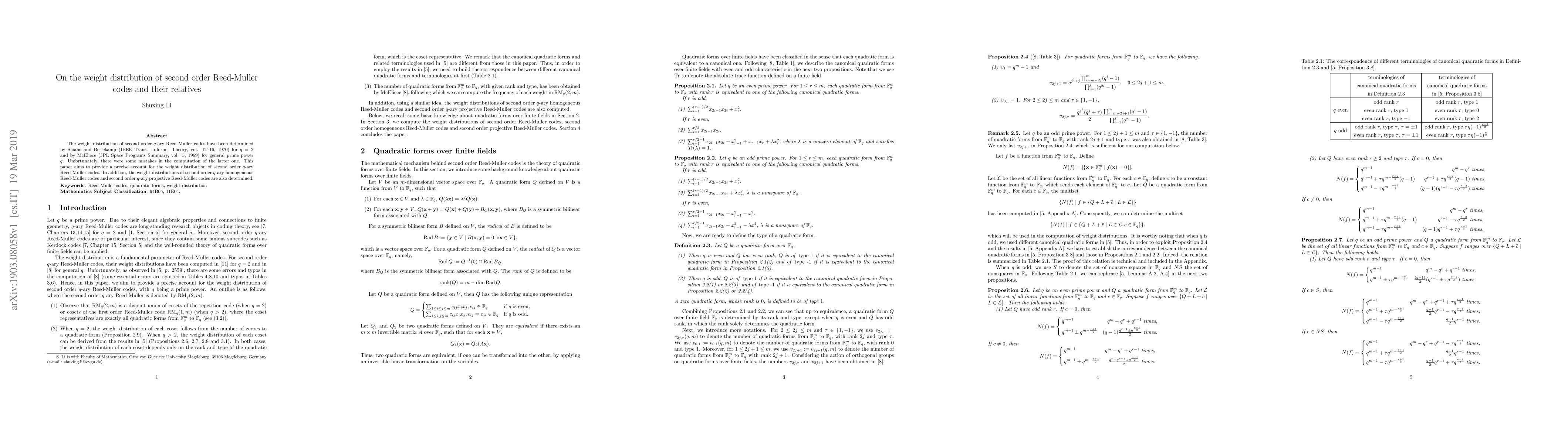 The weight distribution of second order $q$-ary Reed-Muller codes have been determined by Sloane and Berlekamp (IEEE Trans. Inform. Theory, vol. IT-16, 1970) for $q=2$ and by McEliece (JPL Space Programs Summary, vol. 3, 1969) for general prime power $q$. Unfortunately, there were some mistakes in the computation of the latter one. This paper aims to provide a precise account for the weight distribution of second order $q$-ary Reed-Muller codes. In addition, the weight distributions of second order $q$-ary homogeneous Reed-Muller codes and second order $q$-ary projective Reed-Muller codes are also determined.
