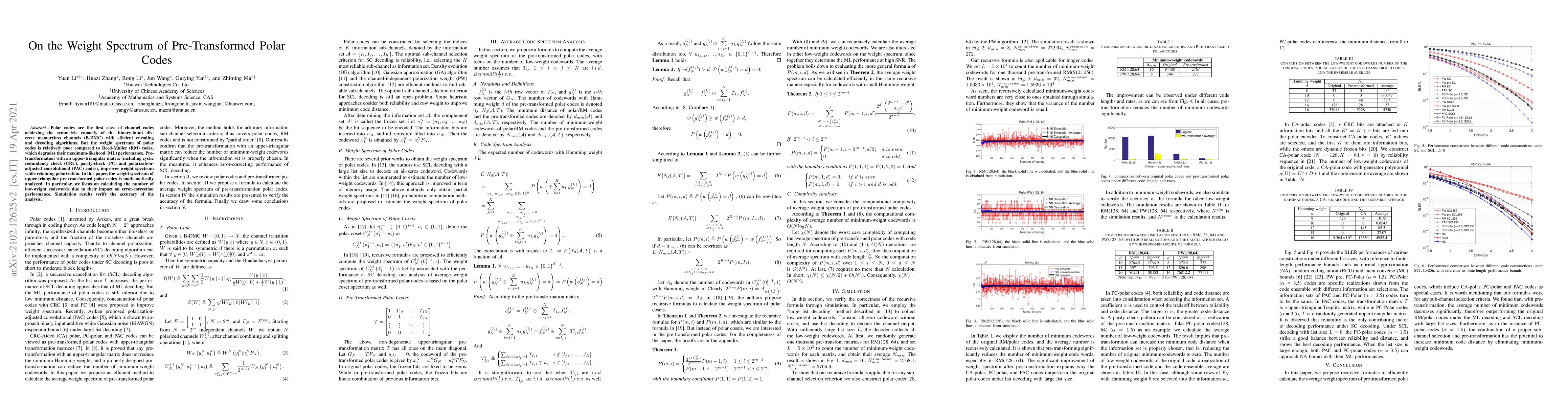 This paper analyzes the weight spectrum of pre-transformed Polar codes using upper-triangular matrices, showing improved weight distribution over traditional Polar codes. It calculates the number of low-weight codewords to assess error-correction performance, with simulation results confirming the mathematical analysis.