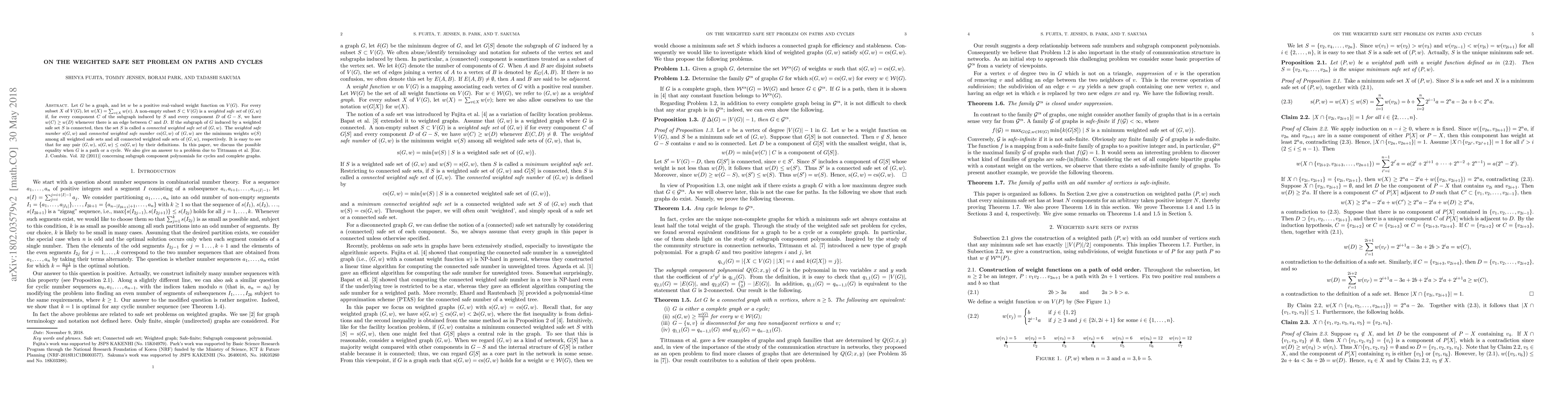 This paper investigates the weighted safe set problem on paths and cycles, focusing on the equality between the weighted safe number and the connected weighted safe number for these specific graph structures. It also addresses a related problem concerning subgraph component polynomials for cycles and complete graphs.