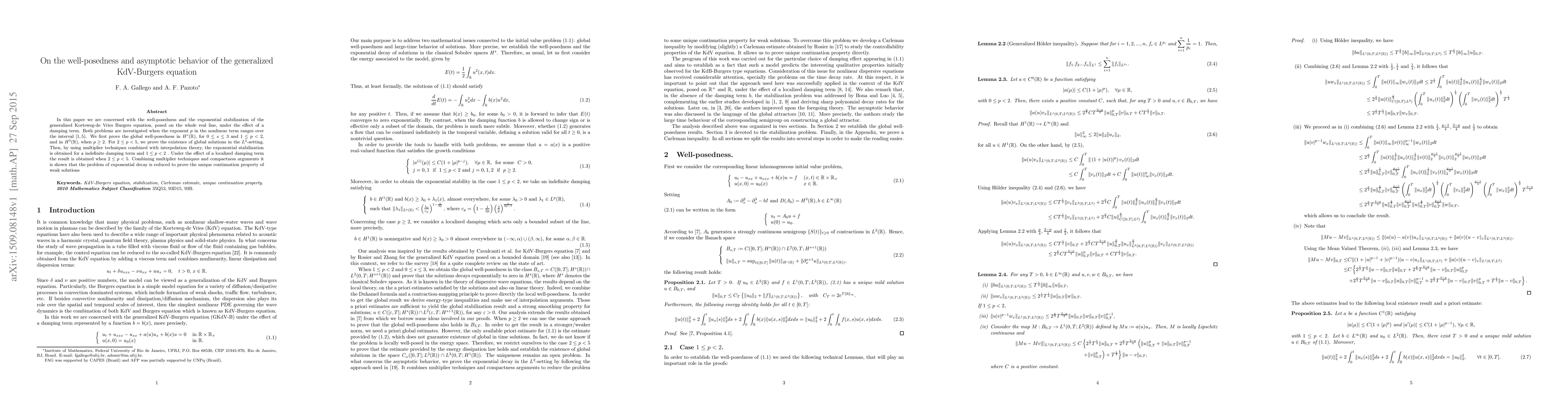 In this paper we are concerned with the well-posedness and the exponential stabilization of the generalized Korteweg-de Vries Burgers equation, posed on the whole real line, under the effect of a damping term. Both problems are investigated when the exponent p in the nonlinear term ranges over the interval $[1,5)$. We first prove the global well-posedness in $H^s(R)$, for $0 \leq s \leq 3$ and $1 \leq p < 2$, and in $H^3(R)$, when $p \geq 2$. For $2 \leq p < 5$, we prove the existence of global solutions in the $L^2$-setting. Then, by using multiplier techniques combined with interpolation theory, the exponential stabilization is obtained for a indefinite damping term and $1 \leq p < 2$. Under the effect of a localized damping term the result is obtained when $2 \leq p < 5$. Combining multiplier techniques and compactness arguments it is shown that the problem of exponential decay is reduced to prove the unique continuation property of weak solutions