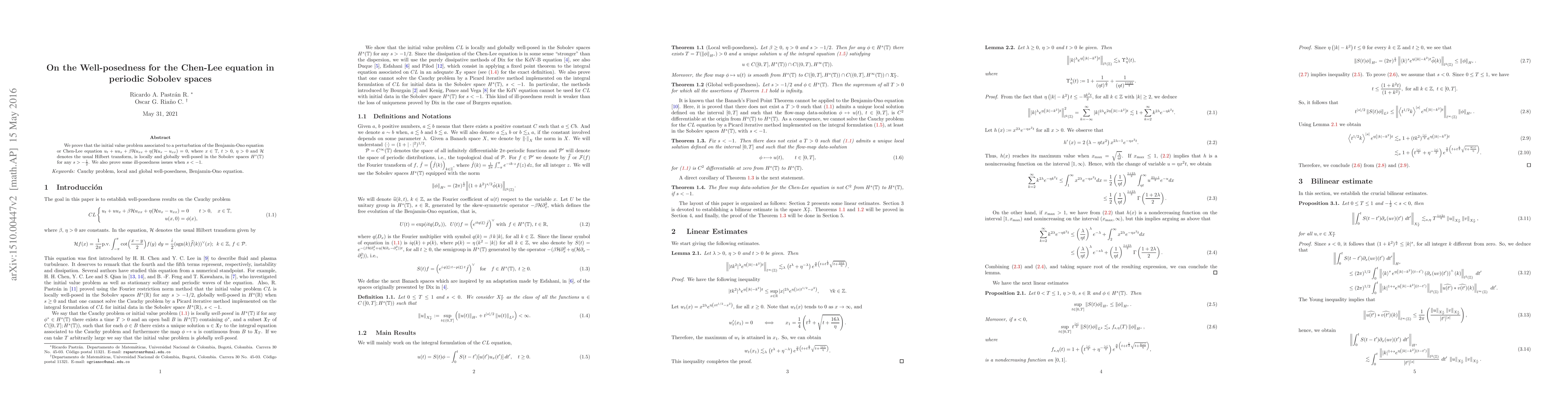 This research proves that the Chen-Lee equation, a mathematical model describing wave behaviors, has solutions that are well-behaved and stable over time for certain function spaces, but can become unpredictable when less regular. The findings help understand the conditions under which the equation's solutions exist and remain stable.