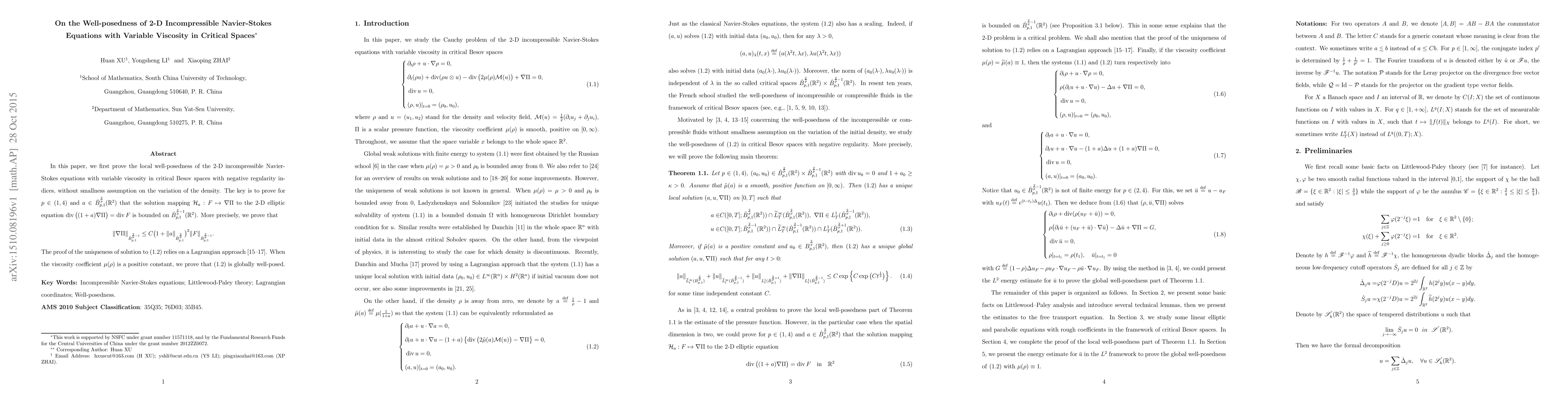 This paper establishes local well-posedness for the 2-D incompressible Navier-Stokes equations with variable viscosity in critical Besov spaces, without requiring smallness assumptions on density variation. The proof leverages a bounded solution mapping for a 2-D elliptic equation and a Lagrangian approach for uniqueness.