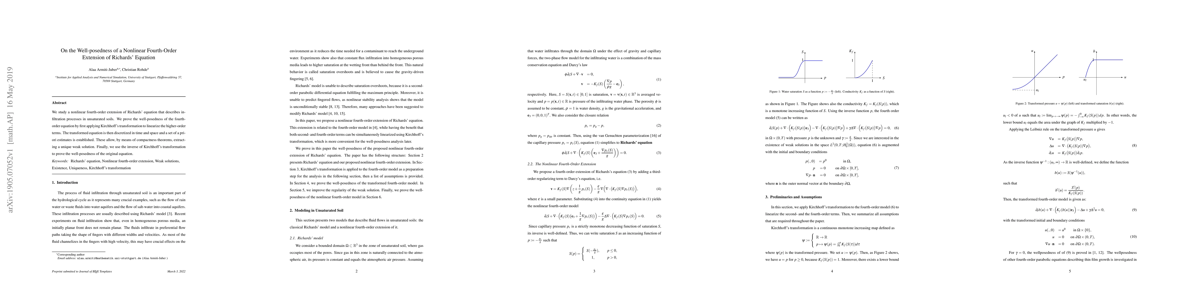 We study a nonlinear fourth-order extension of Richards' equation that describes infiltration processes in unsaturated soils. We prove the well-posedness of the fourth-order equation by first applying Kirchhoff's transformation to linearize the higher-order terms. The transformed equation is then discretized in time and space and a set of a priori estimates is established. These allow, by means of compactness theorems, extracting a unique weak solution. Finally, we use the inverse of Kirchhoff's transformation to prove the well-posedness of the original equation.