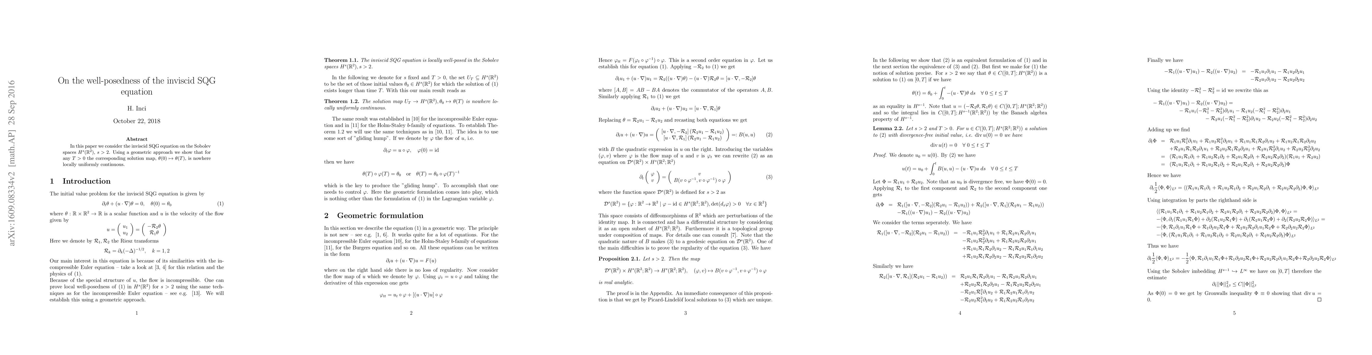 In this paper we consider the inviscid SQG equation on the Sobolev spaces $H^s(\R^2)$, $s > 2$. Using a geometric approach we show that for any $T > 0$ the corresponding solution map, $\theta(0) \mapsto \theta(T)$, is nowhere locally uniformly continuous.