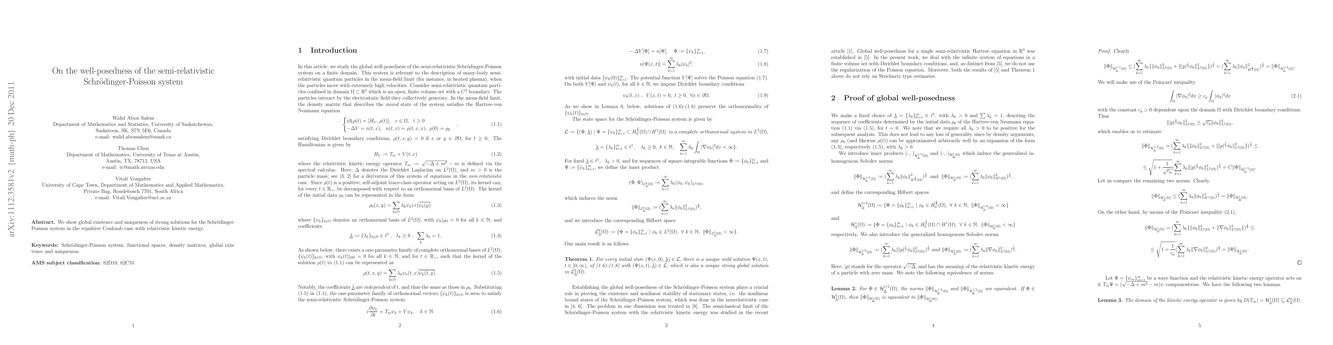 Summary: This paper establishes global existence and uniqueness of strong solutions for the semi-relativistic Schrödinger-Poisson system in the repulsive Coulomb case, incorporating relativistic kinetic energy. The analysis ensures the well-posedness of the system under consideration.