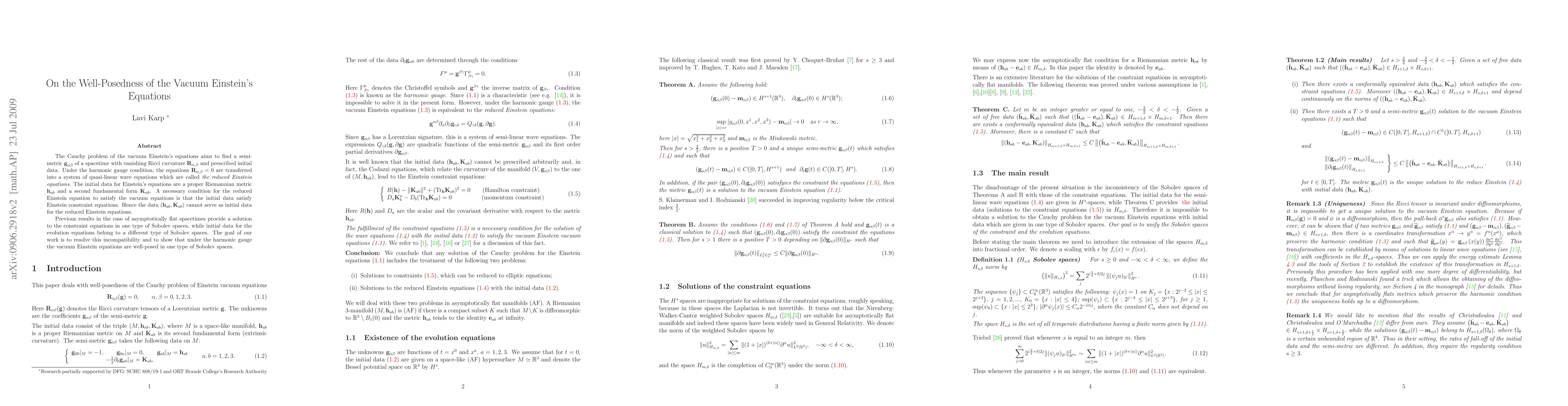 This paper investigates the well-posedness of the vacuum Einstein's equations under the harmonic gauge, addressing the incompatibility between the constraint equations and evolution equations' initial data in different Sobolev spaces. It demonstrates that the equations are well-posed when both types of data are in the same Sobolev space.