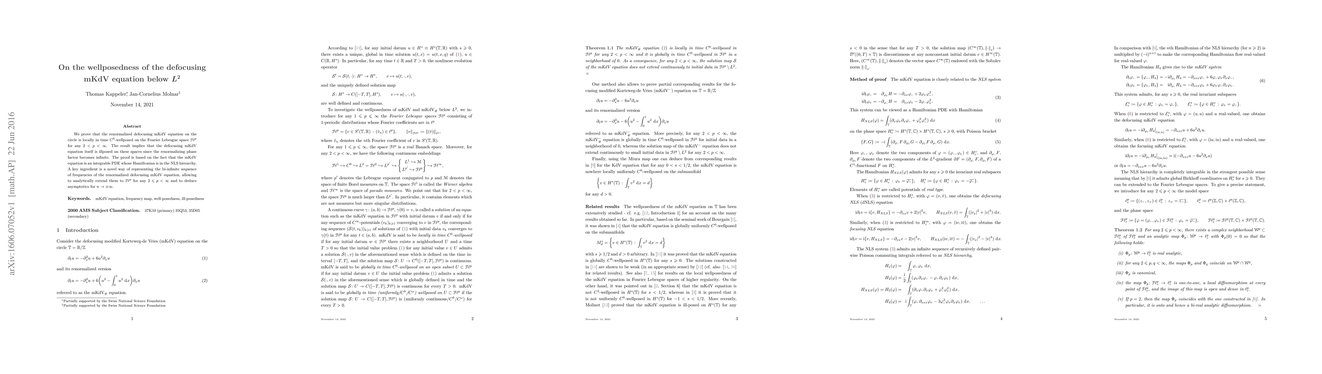 We prove that the renormalized defocusing mKdV equation on the circle is locally in time $C^{0}$-wellposed on the Fourier Lebesgue space ${\mathcal{F}\ell}^p$ for any $2 < p < \infty$. The result implies that the defocusing mKdV equation itself is illposed on these spaces since the renormalizing phase factor becomes infinite. The proof is based on the fact that the mKdV equation is an integrable PDE whose Hamiltonian is in the NLS hierarchy. A key ingredient is a novel way of representing the bi-infinite sequence of frequencies of the renormalized defocusing mKdV equation, allowing to analytically extend them to ${\mathcal{F}\ell}^p$ for any $2 \le p < \infty$ and to deduce asymptotics for $n \to \pm \infty$.
