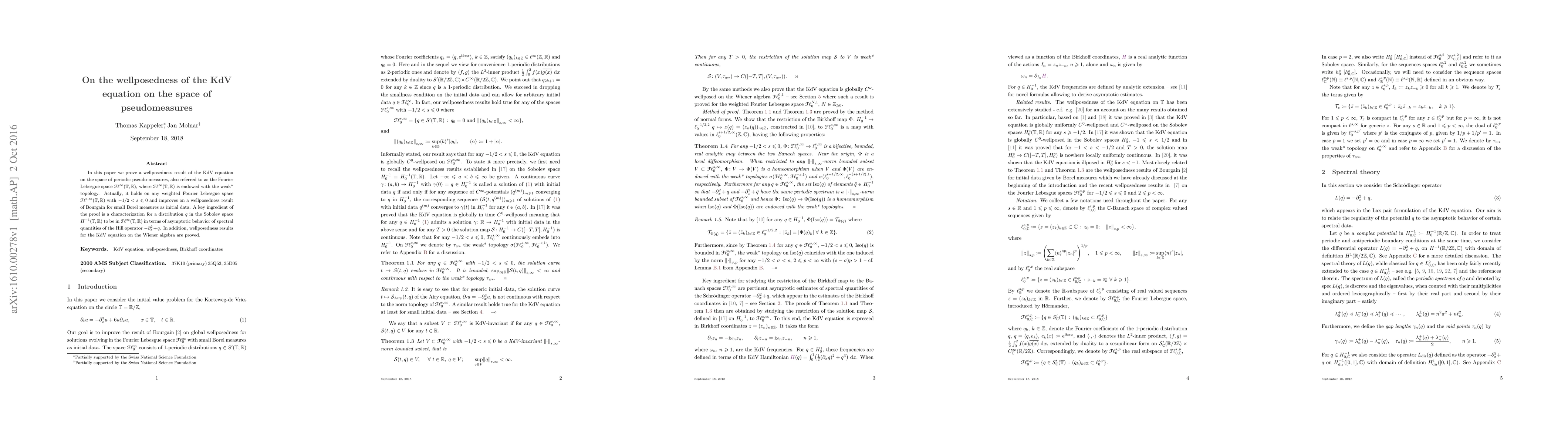 This paper establishes wellposedness for the KdV equation on periodic pseudo-measures in Fourier Lebesgue spaces, improving upon previous results for small Borel measures. The proof leverages a characterization of distributions in $H^{-1}$ and extends findings to the Wiener algebra.