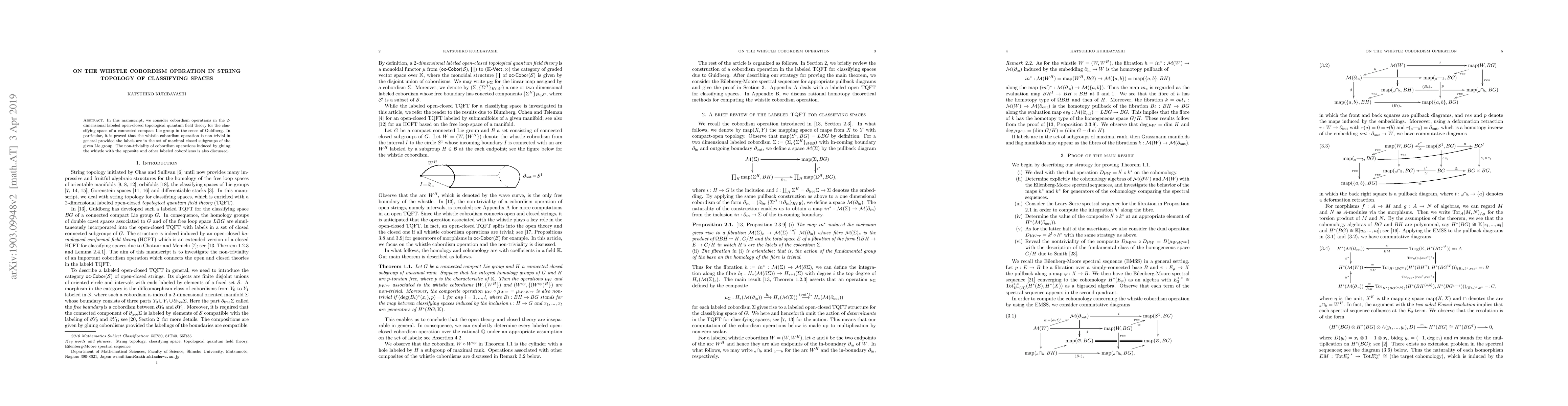 In this manuscript, we consider cobordism operations in the $2$-dimensional labeled open-closed topological quantum field theory for the classifying space of a connected compact Lie group in the sense of Guldberg. In particular, it is proved that the whistle cobordism operation is non-trivial in general provided the labels are in the set of maximal closed subgroups of the given Lie group. The non-triviality of cobordism operations induced by gluing the whistle with the opposite and other labeled cobordisms is also discussed.