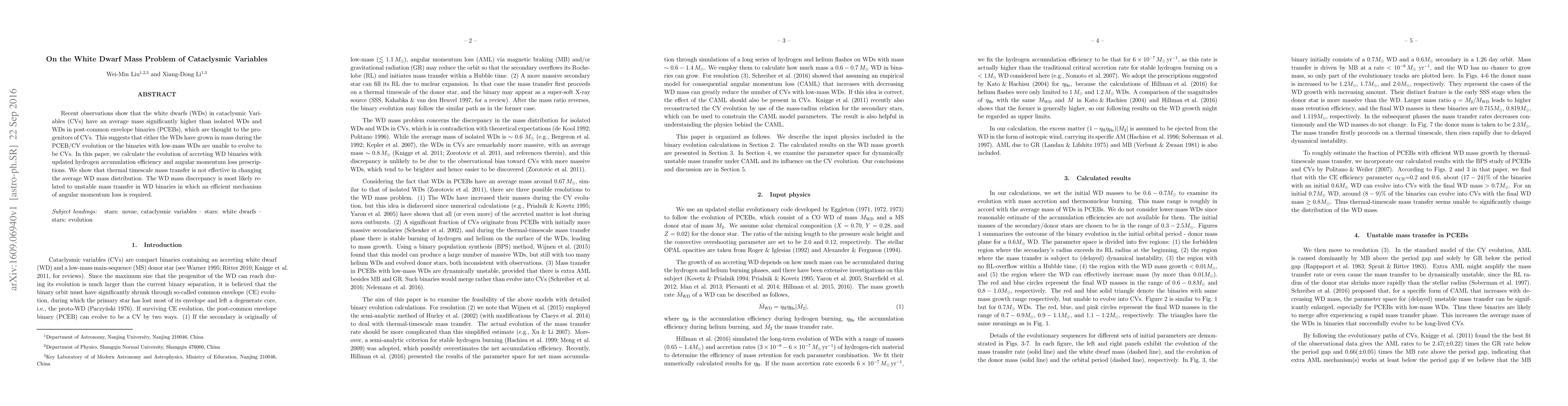This paper investigates the higher average mass of white dwarfs in cataclysmic variables compared to their isolated counterparts, suggesting either mass growth during evolution or selection against low-mass binaries. The study finds that thermal mass transfer is ineffective, and the mass discrepancy likely arises from unstable mass transfer requiring efficient angular momentum loss mechanisms.
