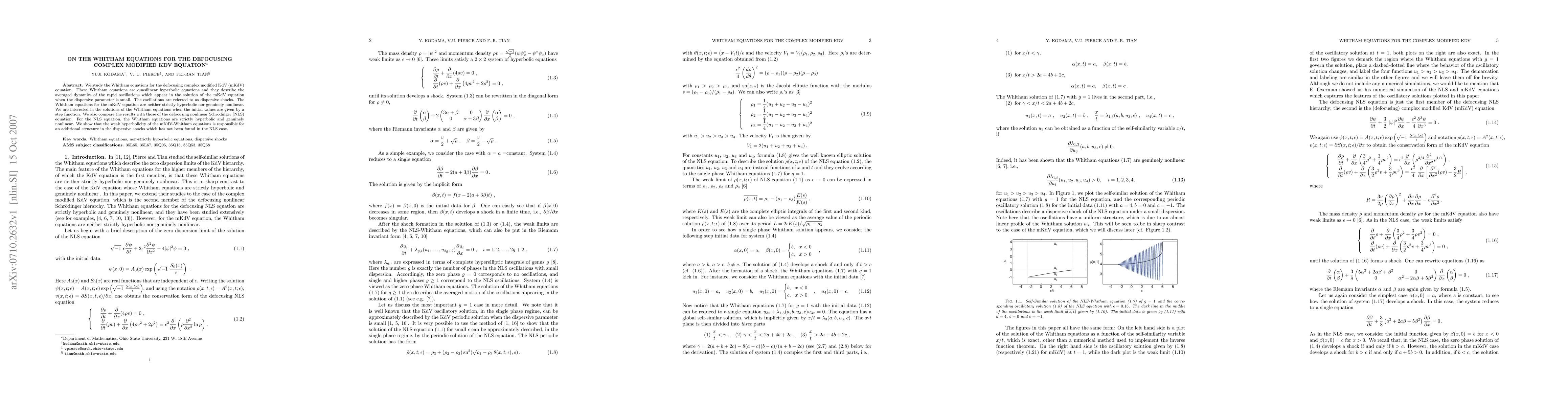 We study the Whitham equations for the defocusing complex modified KdV (mKdV) equation. These Whitham equations are quasilinear hyperbolic equations and they describe the averaged dynamics of the rapid oscillations which appear in the solution of the mKdV equation when the dispersive parameter is small. The oscillations are referred to as dispersive shocks. The Whitham equations for the mKdV equation are neither strictly hyperbolic nor genuinely nonlinear. We are interested in the solutions of the Whitham equations when the initial values are given by a step function. We also compare the results with those of the defocusing nonlinear Schrodinger (NLS) equation. For the NLS equation, the Whitham equations are strictly hyperbolic and genuinely nonlinear. We show that the weak hyperbolicity of the mKdV-Whitham equations is responsible for an additional structure in the dispersive shocks which has not been found in the NLS case.