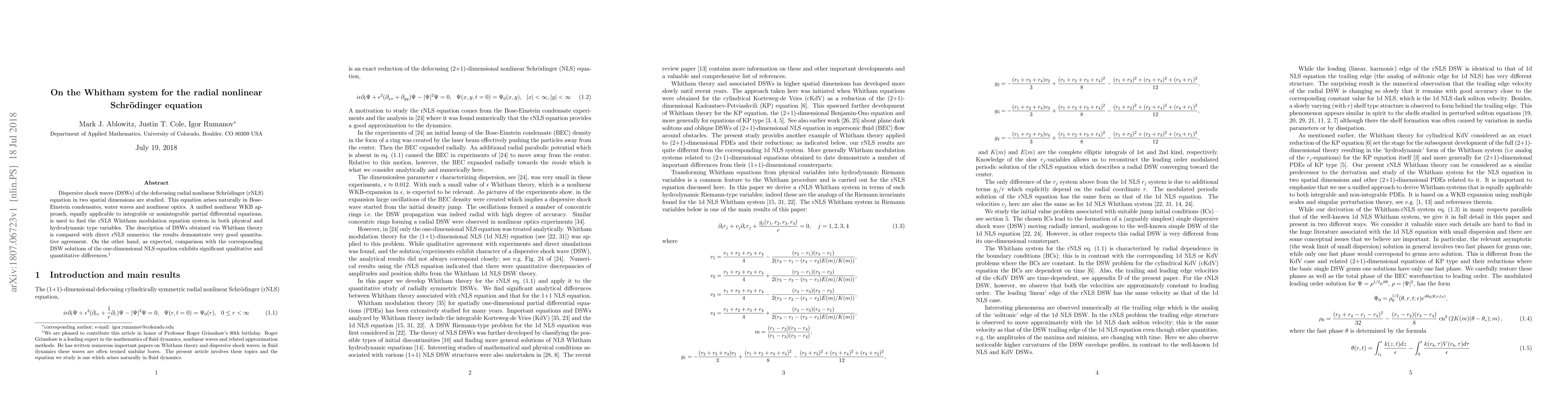 This paper studies dispersive shock waves in the radial nonlinear Schrödinger equation using a unified nonlinear WKB approach, finding good agreement between Whitham theory and direct numerics. It highlights significant differences between the radial and one-dimensional nonlinear Schrödinger equations in describing these shock waves.