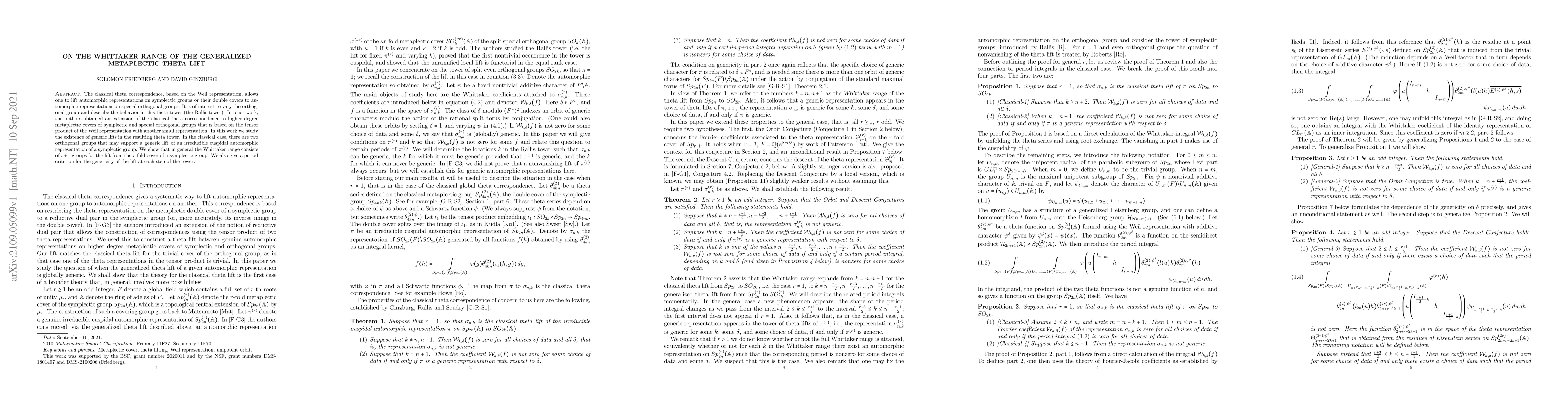 This paper extends the classical theta correspondence to higher degree metaplectic covers, exploring the Whittaker range for the lifted automorphic representations and providing a period criterion for the genericity of these lifts in the resulting theta tower.