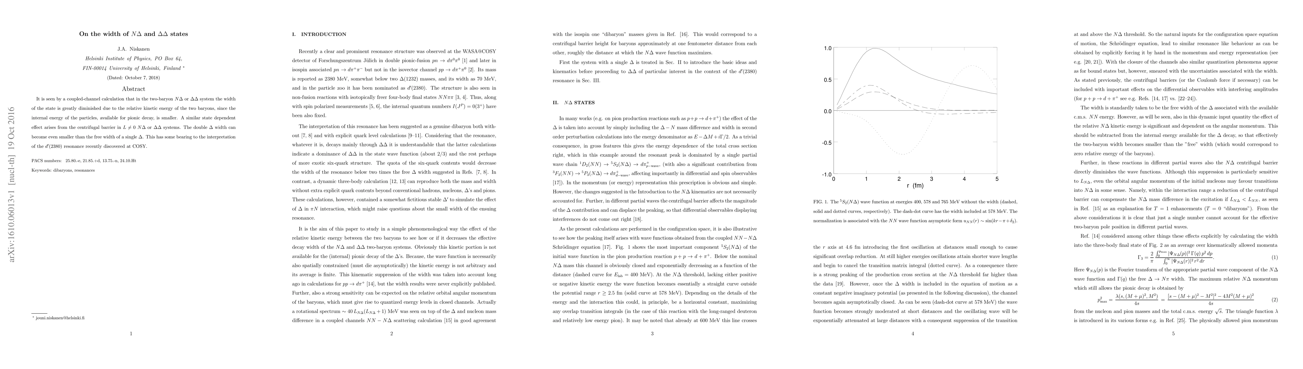 Research shows that the width of N-Delta and Delta-Delta states is greatly diminished due to relative kinetic energy, leading to smaller pionic decay widths than expected. This effect has implications for the interpretation of recently discovered resonances, such as the d'(2380) resonance at COSY.