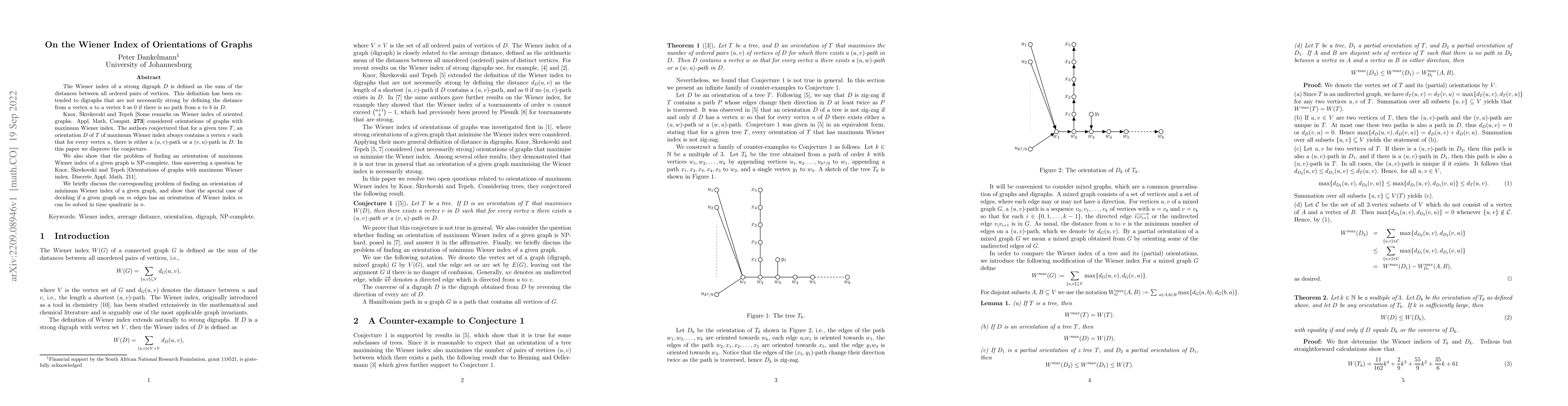 This paper disproves a conjecture regarding orientations of trees with maximum Wiener index and shows that finding such an orientation is NP-complete. It also discusses the problem of minimizing the Wiener index and provides a quadratic-time solution for determining if a graph has an orientation with a specific Wiener index.