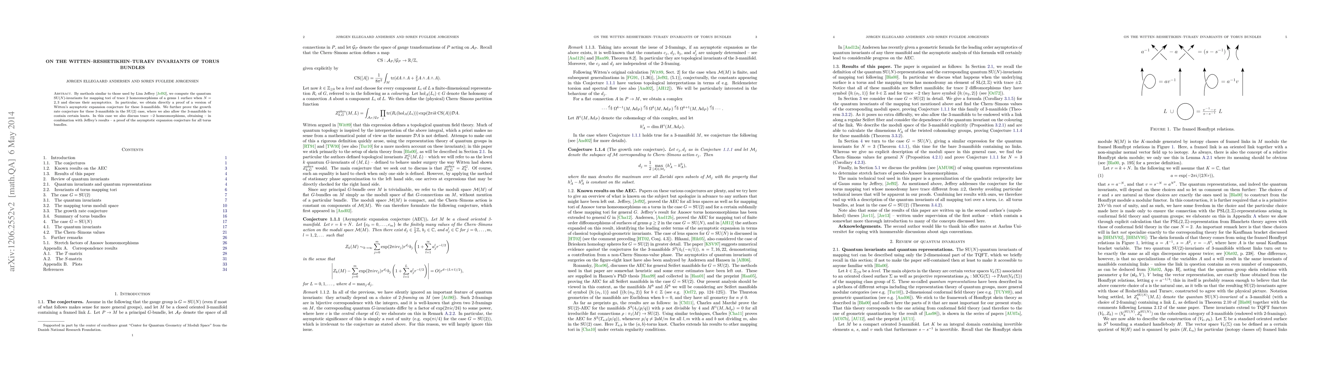 By methods similar to those used by Lisa Jeffrey, we compute the quantum $\mathrm{SU}(N)$-invariants for mapping tori of trace $2$ homeomorphisms of a genus $1$ surface when $N = 2,3$ and discuss their asymptotics. In particular, we obtain directly a proof of a version of Witten's asymptotic expansion conjecture for these 3-manifolds. We further prove the growth rate conjecture for these 3-manifolds in the $\mathrm{SU}(2)$ case, where we also allow the 3-manifolds to contain certain knots. In this case we also discuss trace $-2$ homeomorphisms, obtaining -- in combination with Jeffrey's results -- a proof of the asymptotic expansion conjecture for all torus bundles.