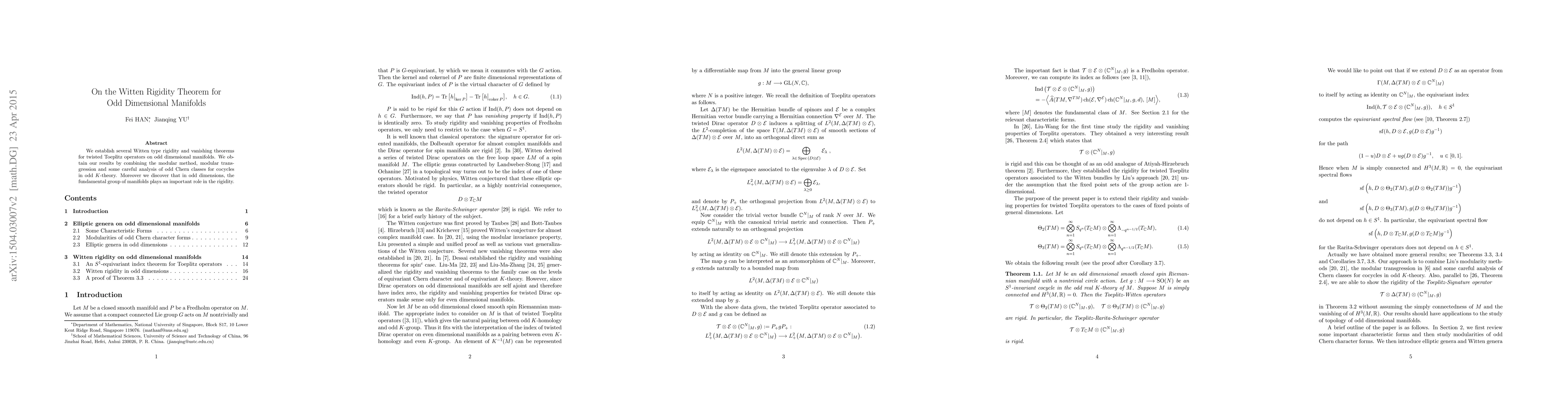 This paper establishes Witten rigidity and vanishing theorems for twisted Toeplitz operators on odd dimensional manifolds using modular methods, modular transgression, and analysis of odd Chern classes. It highlights the significant role of the fundamental group in the rigidity of these manifolds in odd dimensions.