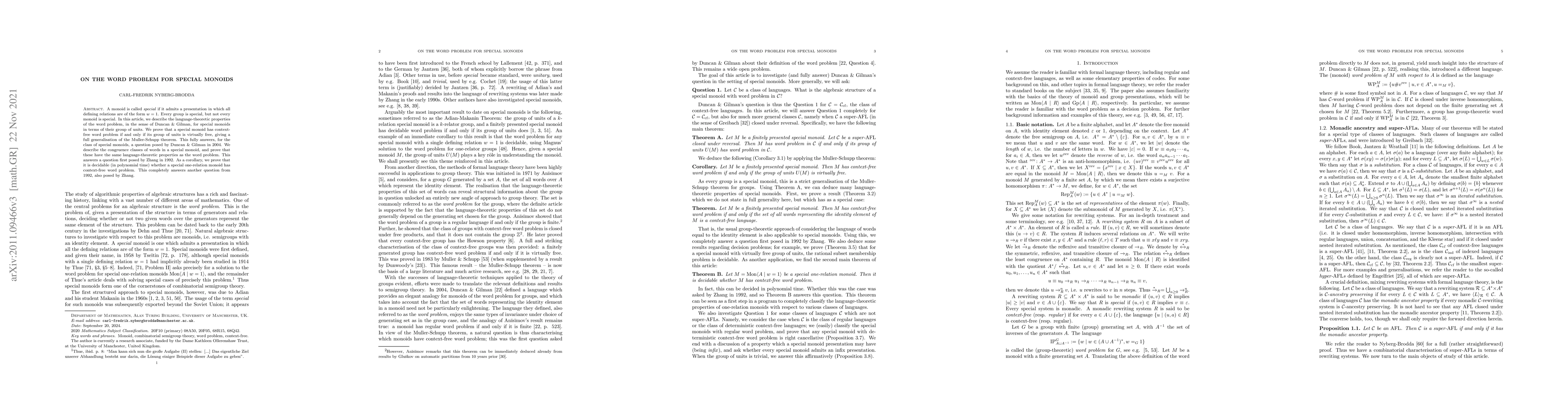 This paper investigates the language-theoretic properties of the word problem for special monoids, proving that a special monoid has a context-free word problem if and only if its group of units is virtually free, fully generalizing the Muller-Schupp theorem. It also resolves questions posed by Duncan & Gilman and Zhang regarding the decidability and structure of these monoids' word problems.